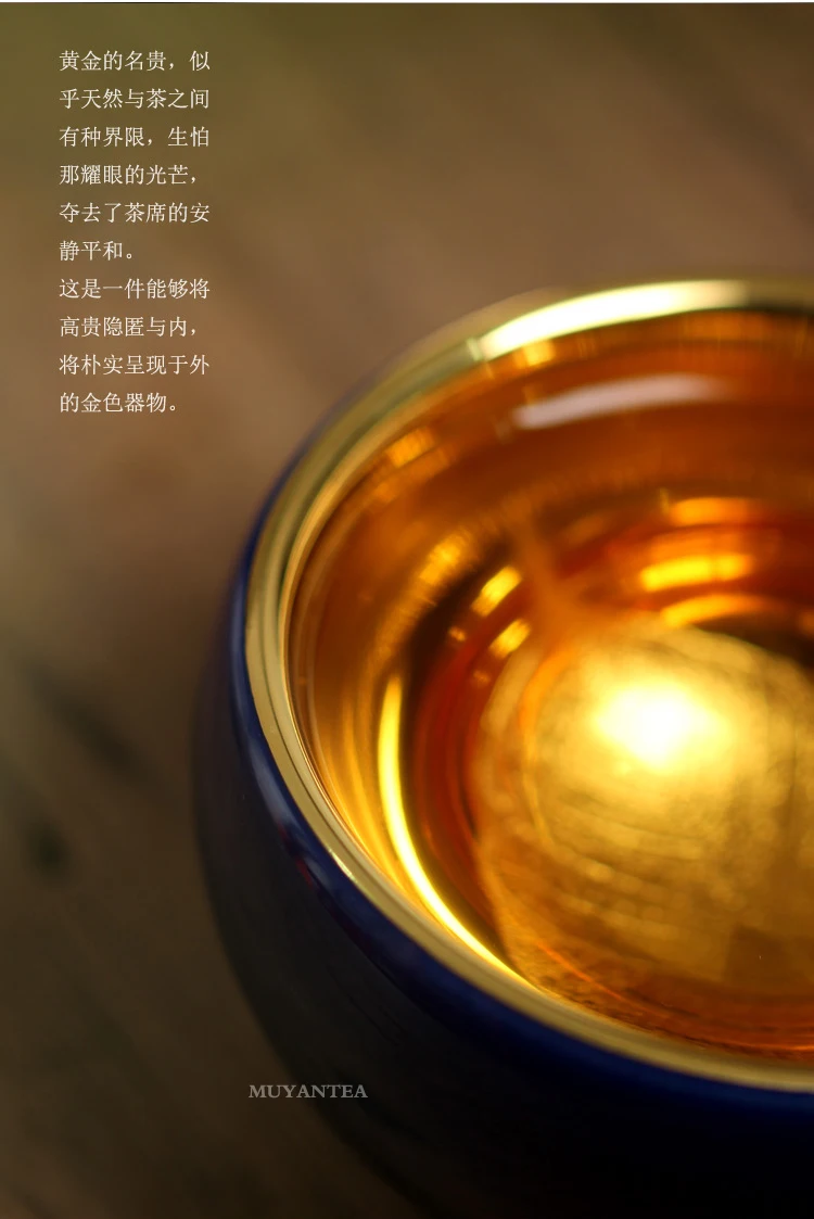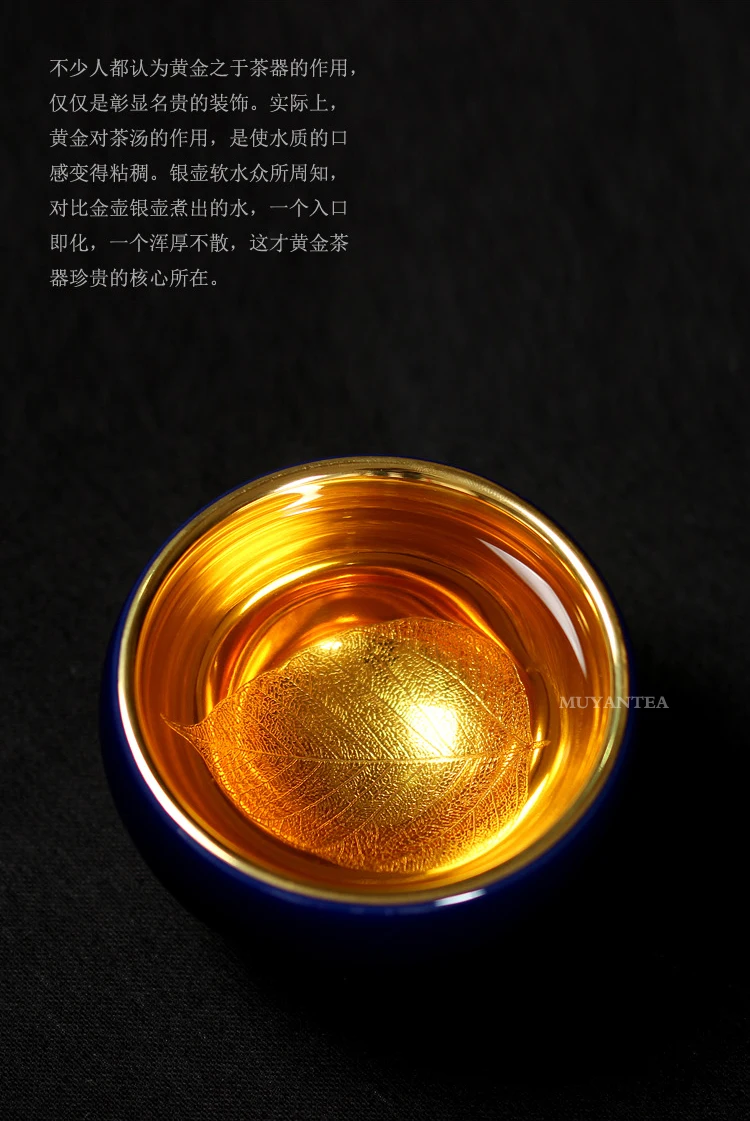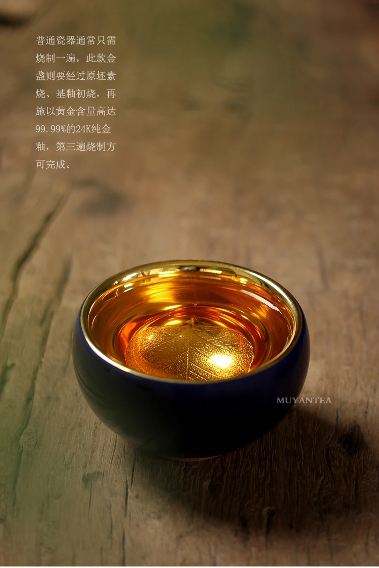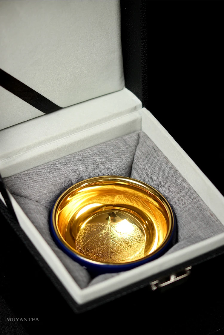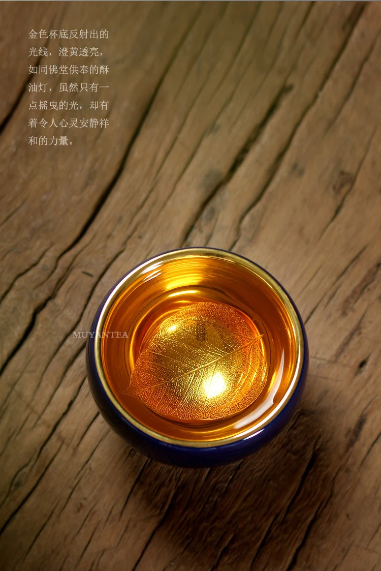 MuYan famous master Roy 24 k jinzhan masters cup by hand back to the blue and gold leaf lamp that pu 'er tea cups