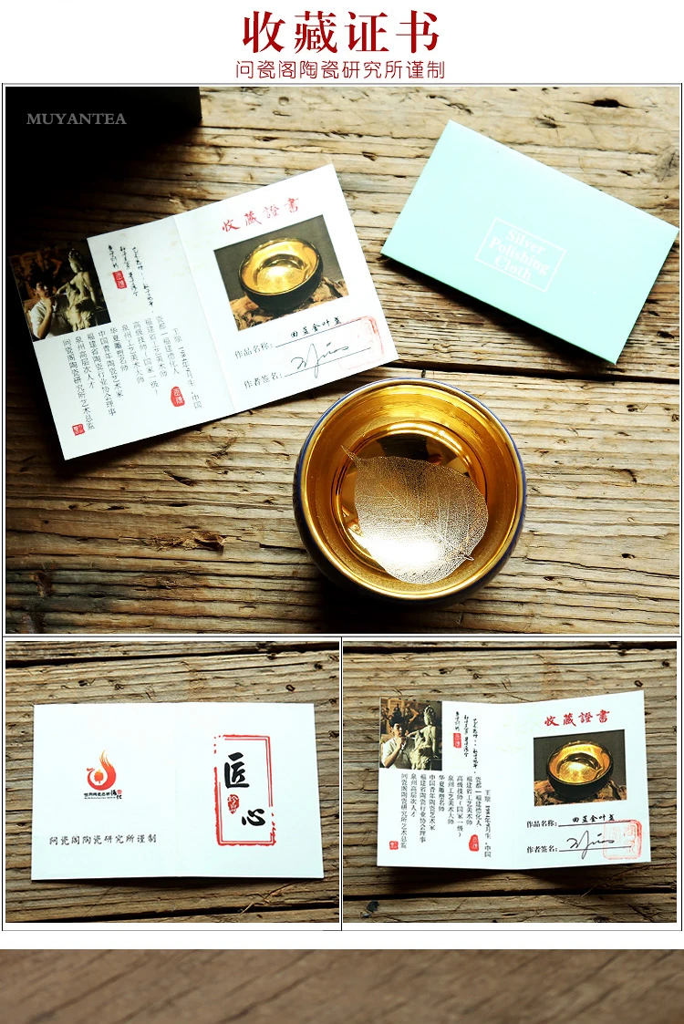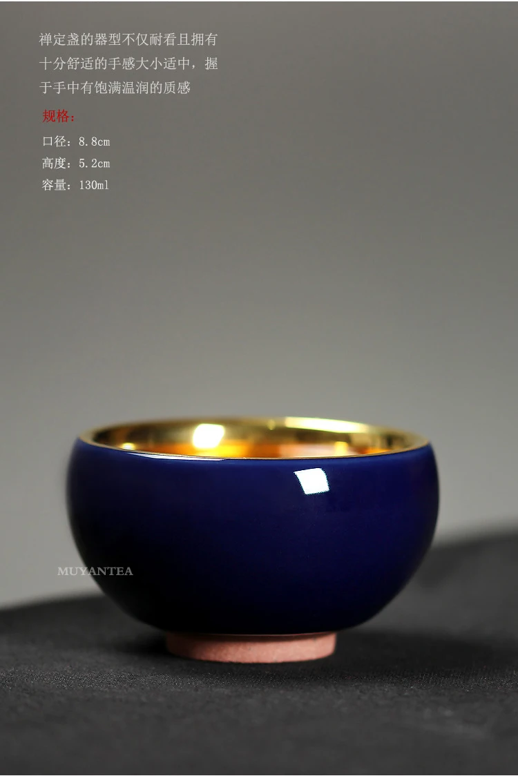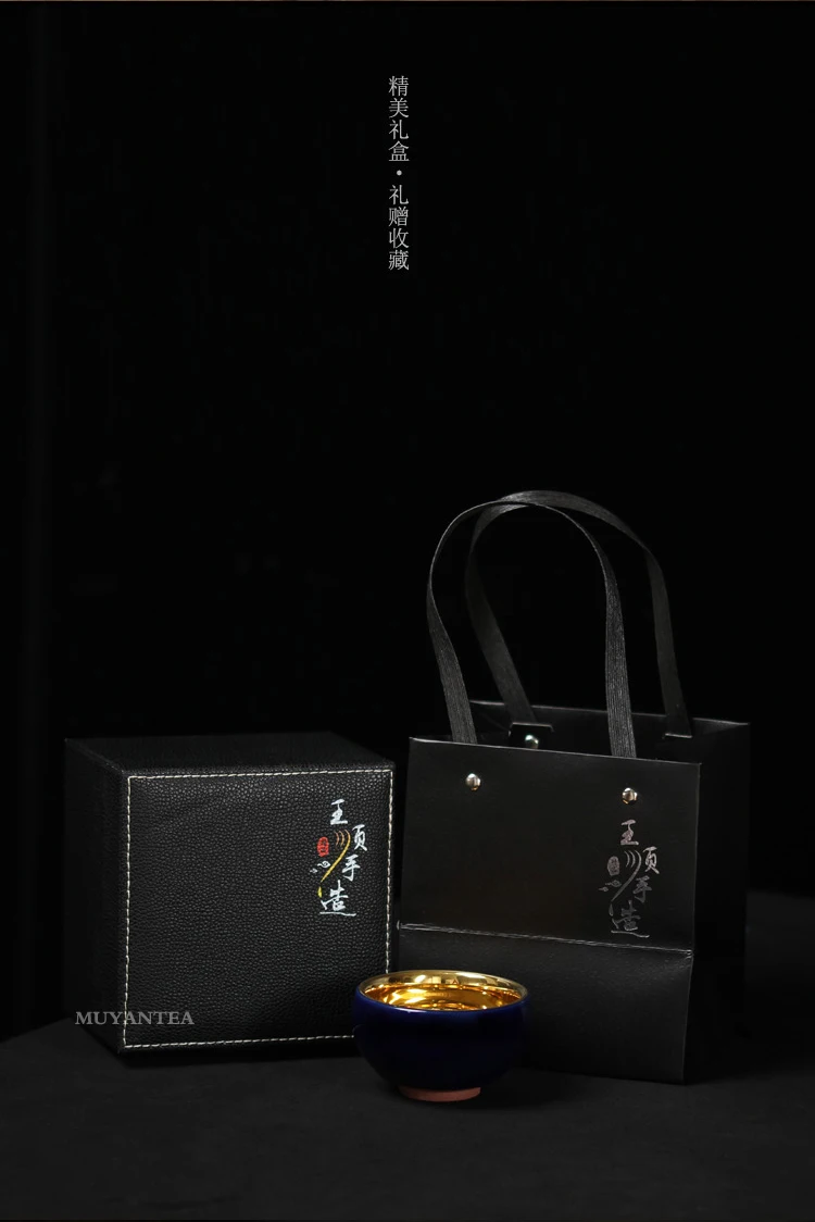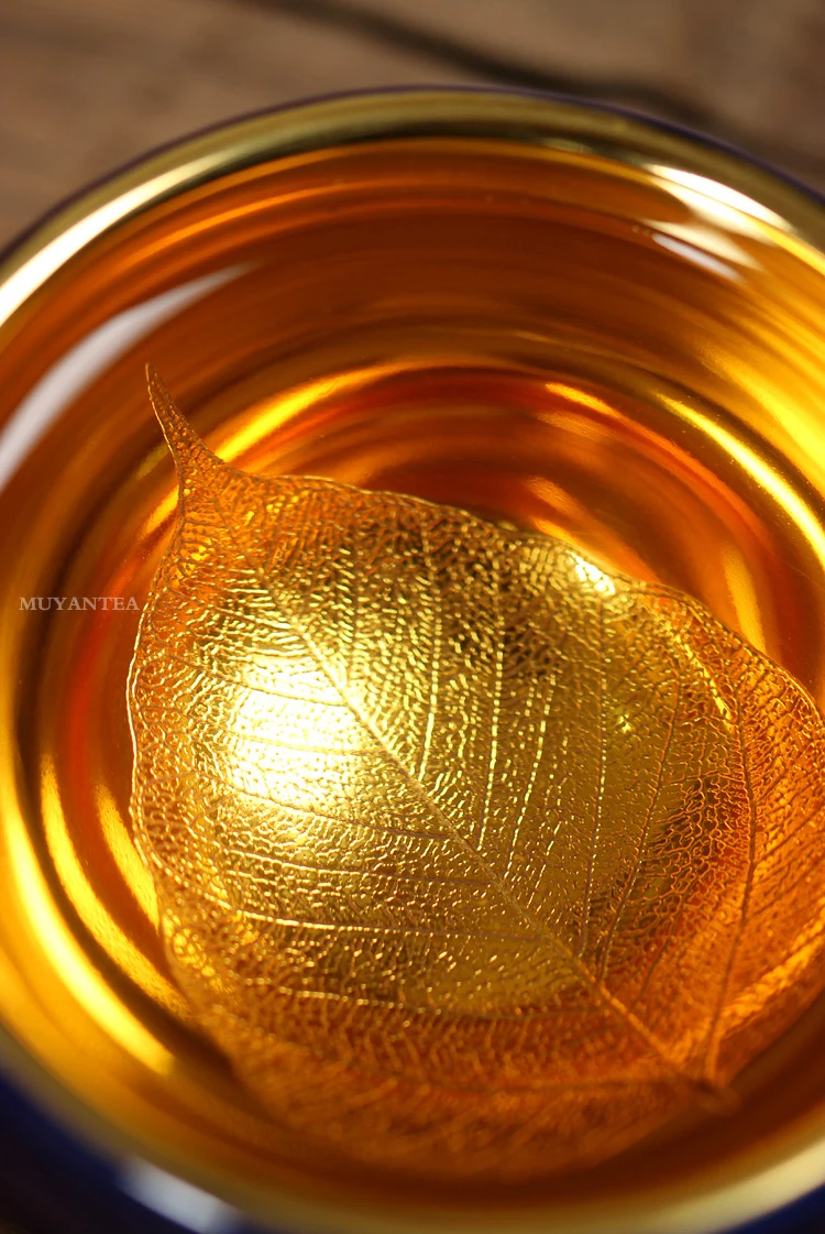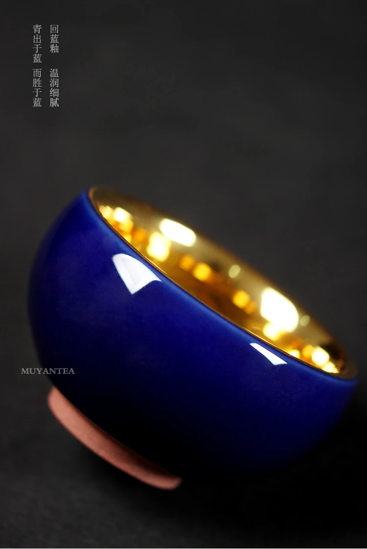 MuYan famous master Roy 24 k jinzhan masters cup by hand back to the blue and gold leaf lamp that pu 'er tea cups