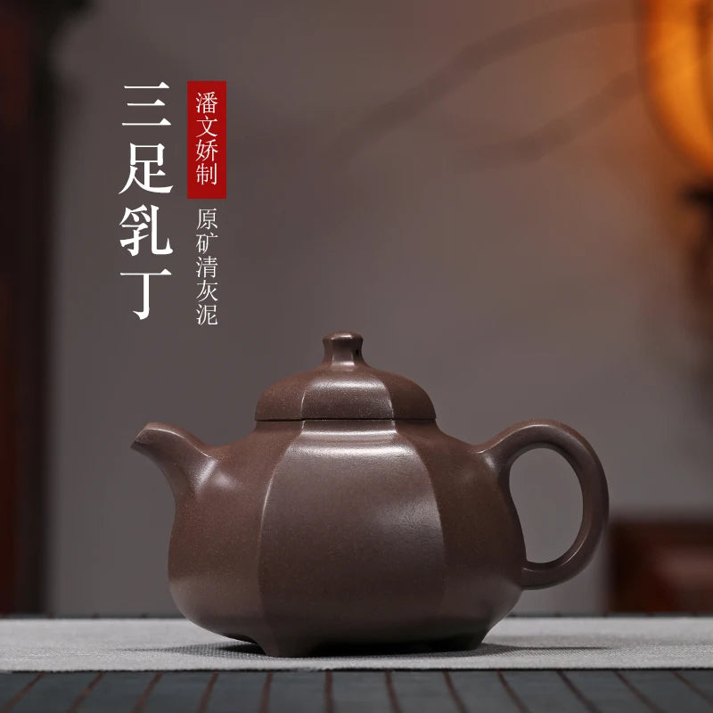 |[national work products] Yixing purple clay pot, Chinese retro style, pure handmade purple clay three legged milk Ding