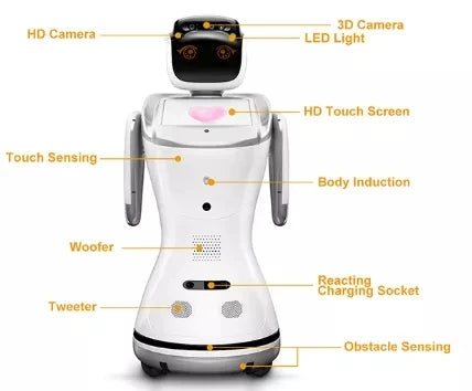 In front of the restaurant door, Sanbot as a "greeter" can attract guests, but also display restaurant related information on the screen: menu, ranking information, discount promotional information and play related video photos.
