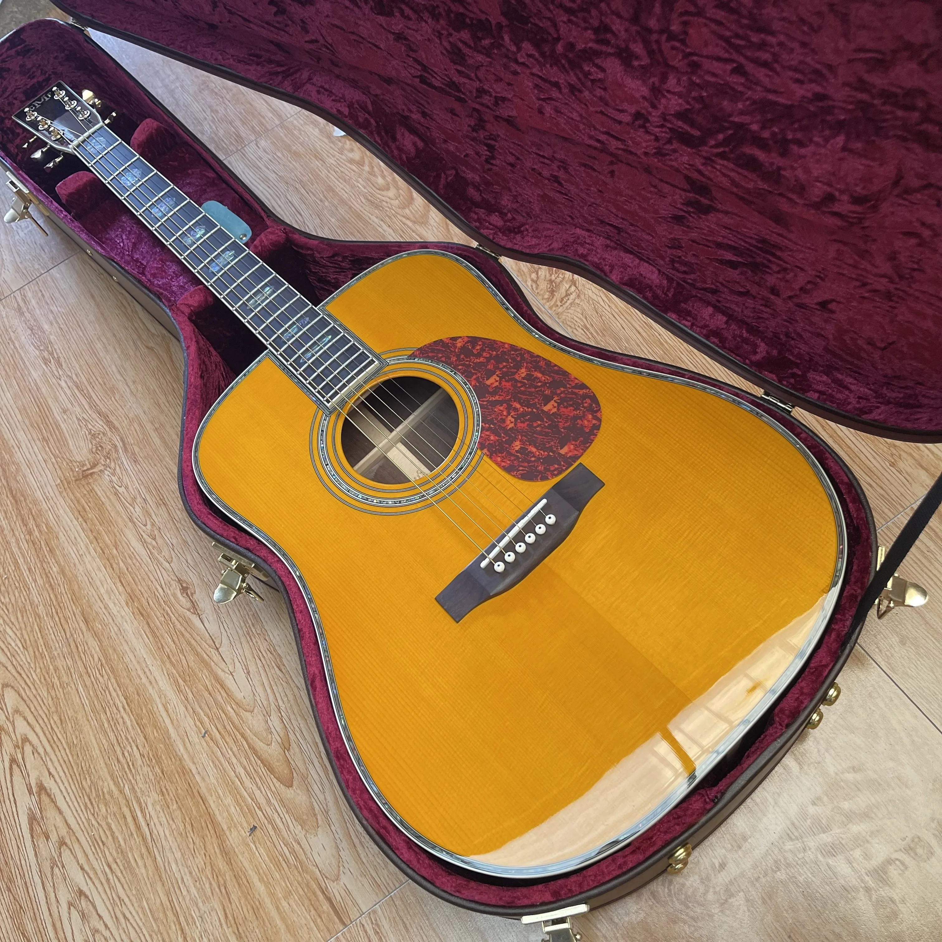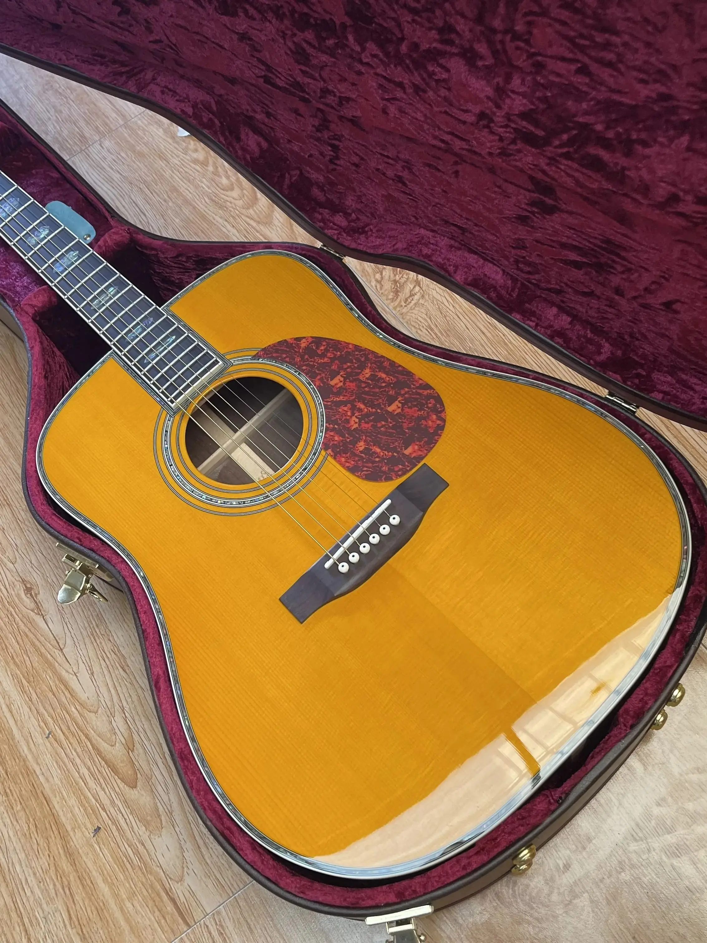 NEW 41-inch D45 series all solid wood side yellow black acoustic guitar plus with hard case 07.05