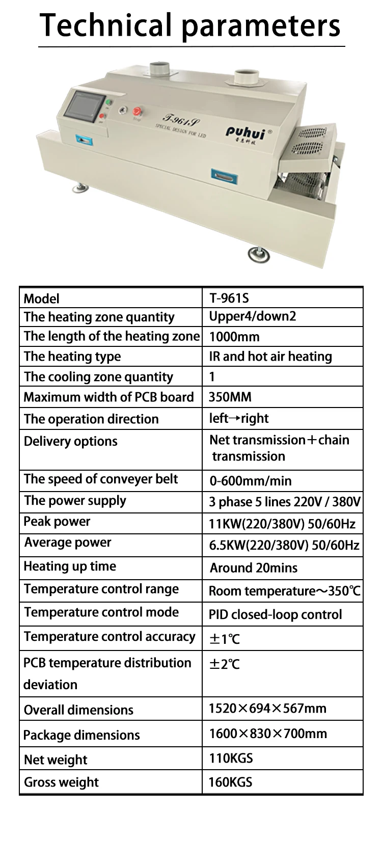 Conveyor infrared & hot air reflow soldering oven T-961s