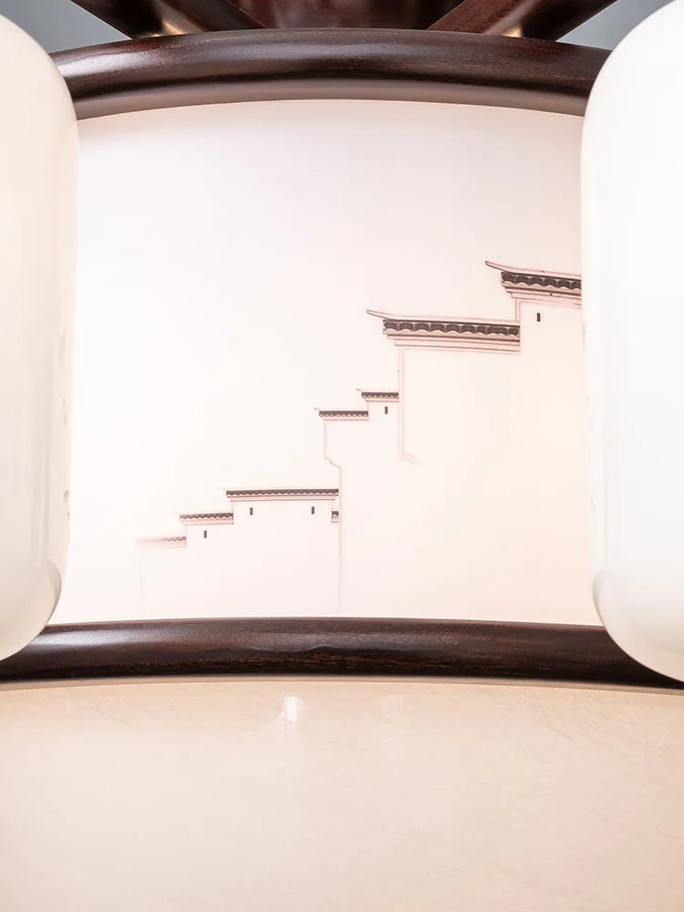 New Chinese-Style Chandelier Lamp in the Living Room High-End Ebony Duplex Villa Atmospheric Solid Wood Restaurant Lamps