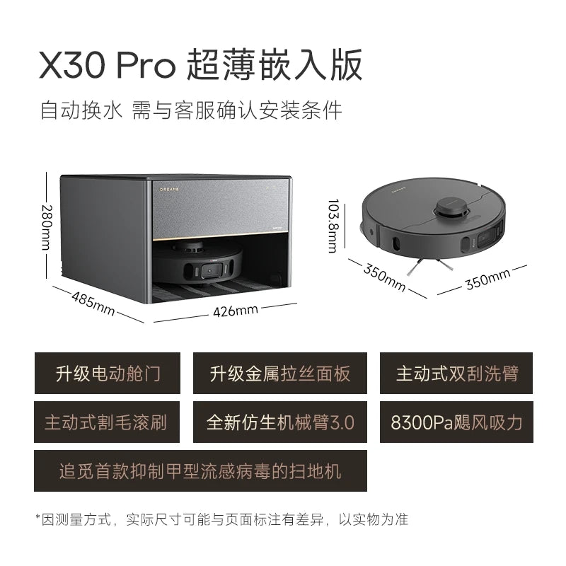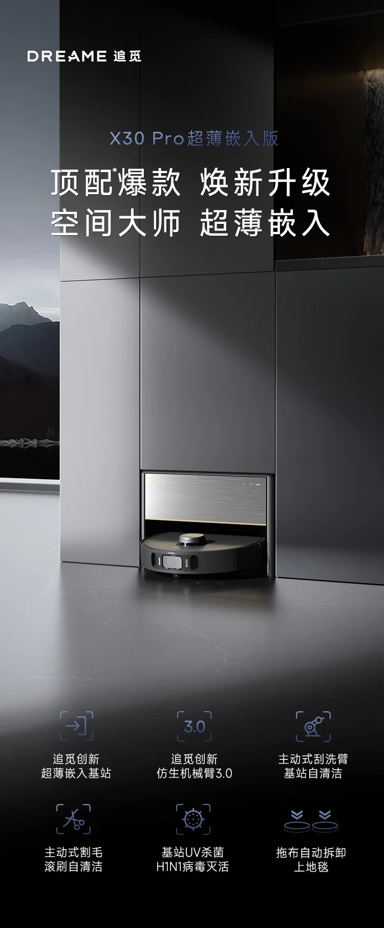 New DreameX30ProUltra thin embedded version sweeping robot all-around base station with integrated water supply and drainage