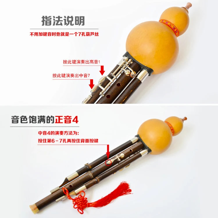New Keyed Hulusi Professional Bamboo Flute F/G/C/Bb Tone Adult Student 7 Holes Plus 3 Keys Wide Range Musical Instrument