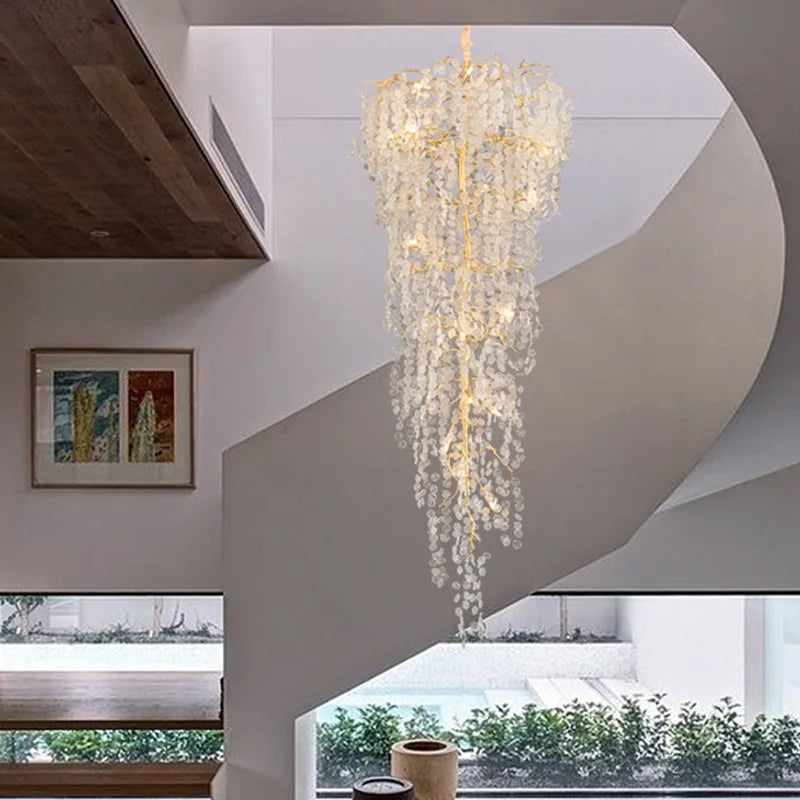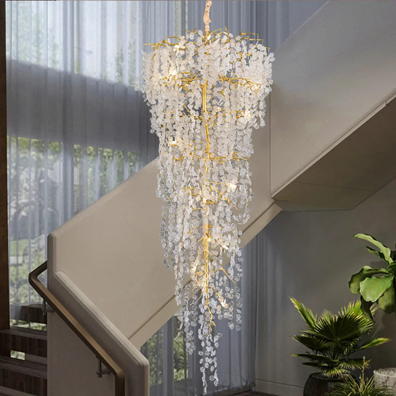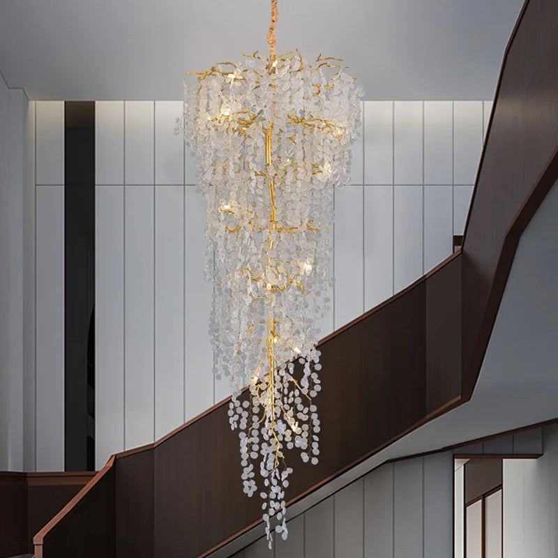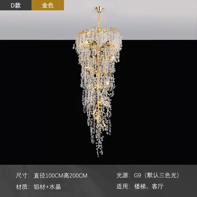 New Luxury Duplex Stair Crystal Chandelier Lighting Living Room Project Villa Hall Hollow French Lamps Manufacturers Wholesale