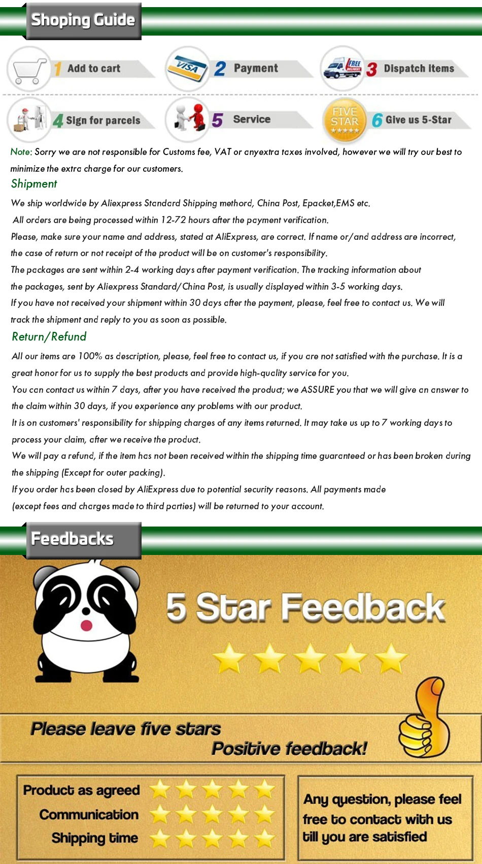 We always offer fast shipping way like DHL ,Fedex ,EMS ,Special-fast line as each country ,If you need to specify the mode of transport, please mark the order ,thank you !