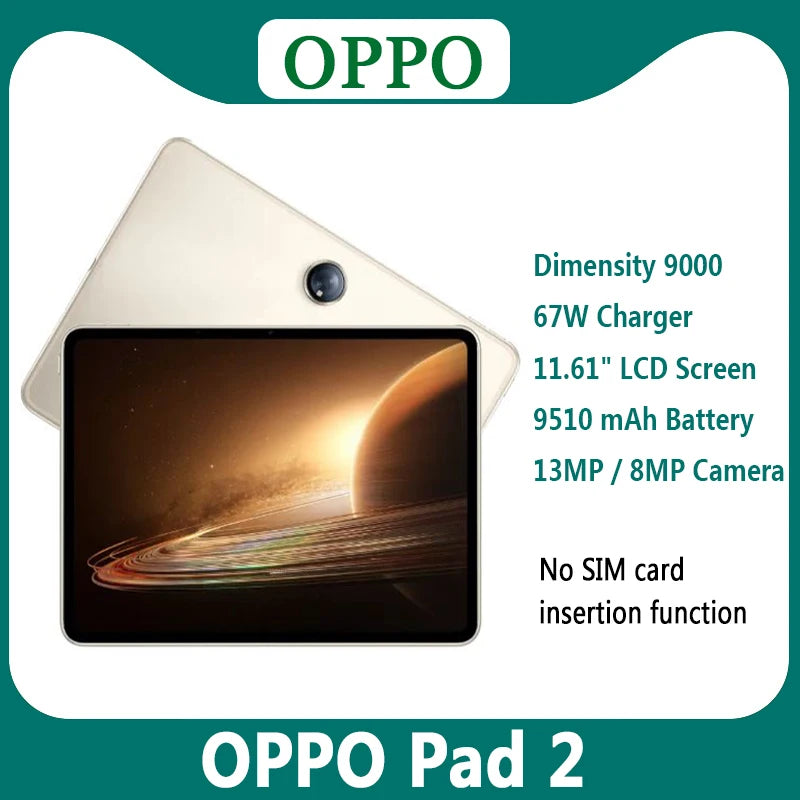 New OPPO Pad 2 Tablet Dimensity 9000 144Hz 11.61" LCD Screen 67W 9510 mAh Battery 13MP / 8MP Andrdid 13