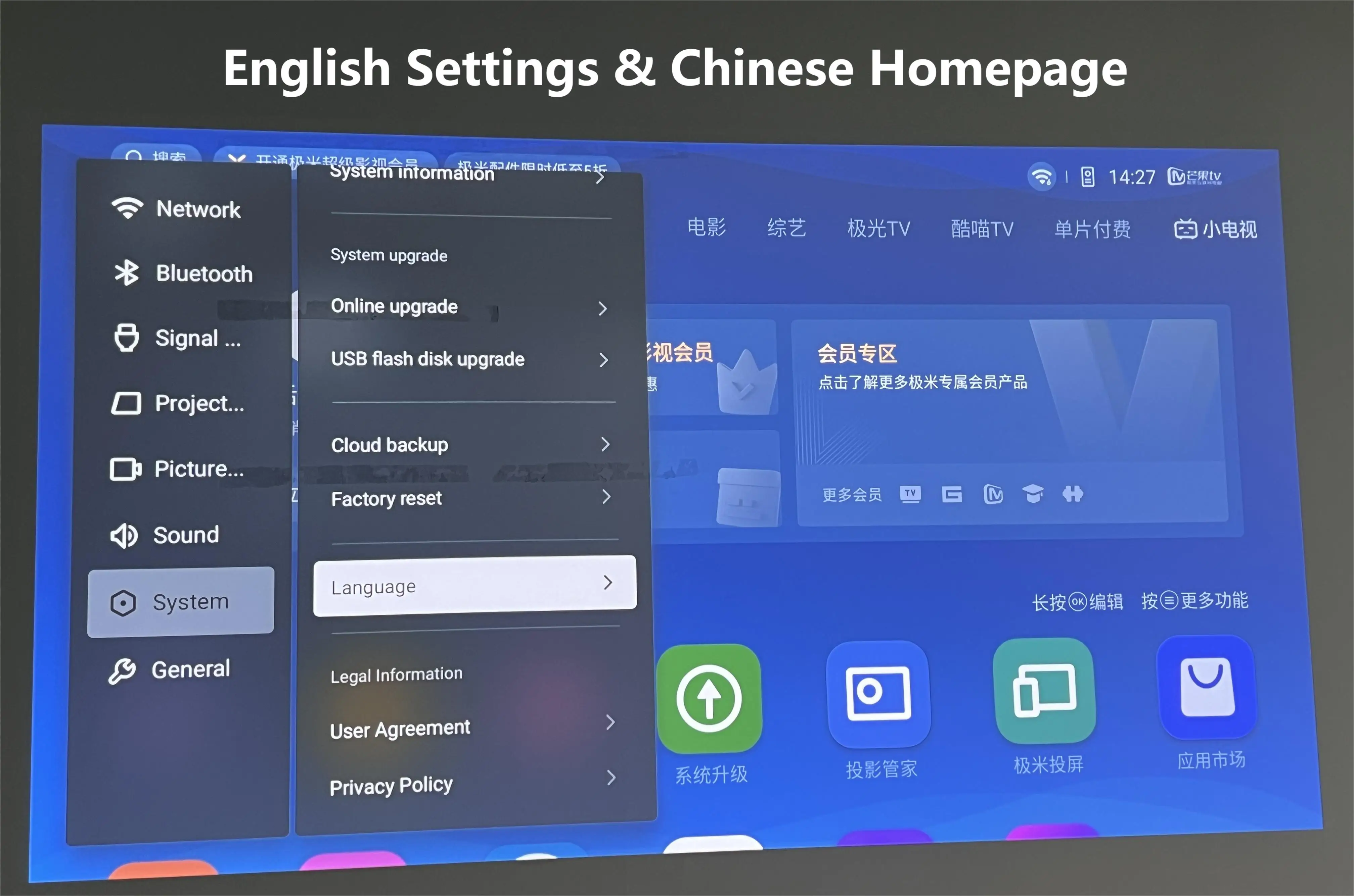 This is Chinese Version, which only supports English and Chinese. Some apps with the English interface will still show Chinese. If necessary, please use it with a TV stick or TV box. Thanks!