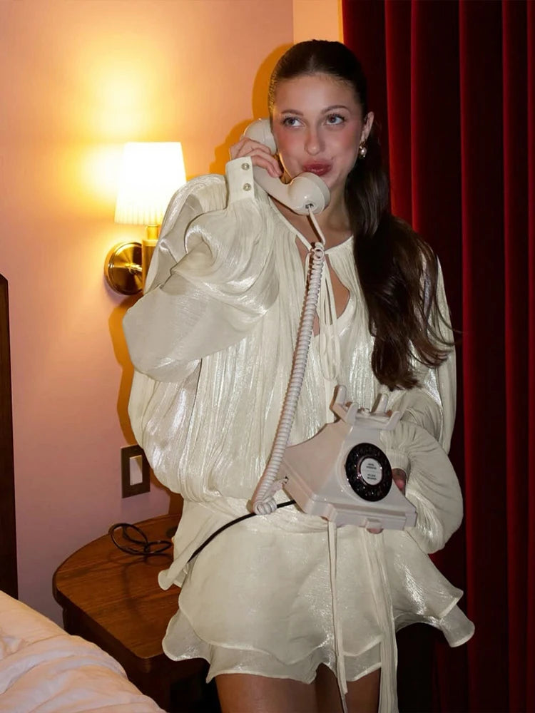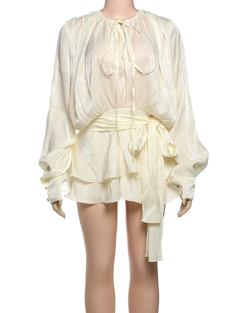Nibber Autumn See Through 2 piece Set Women Chic Satin Y2K Lace Up Tierred Hem Dress+Sash Sexy Trend Matching Clubwear Outfits