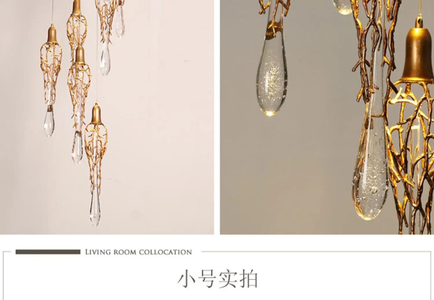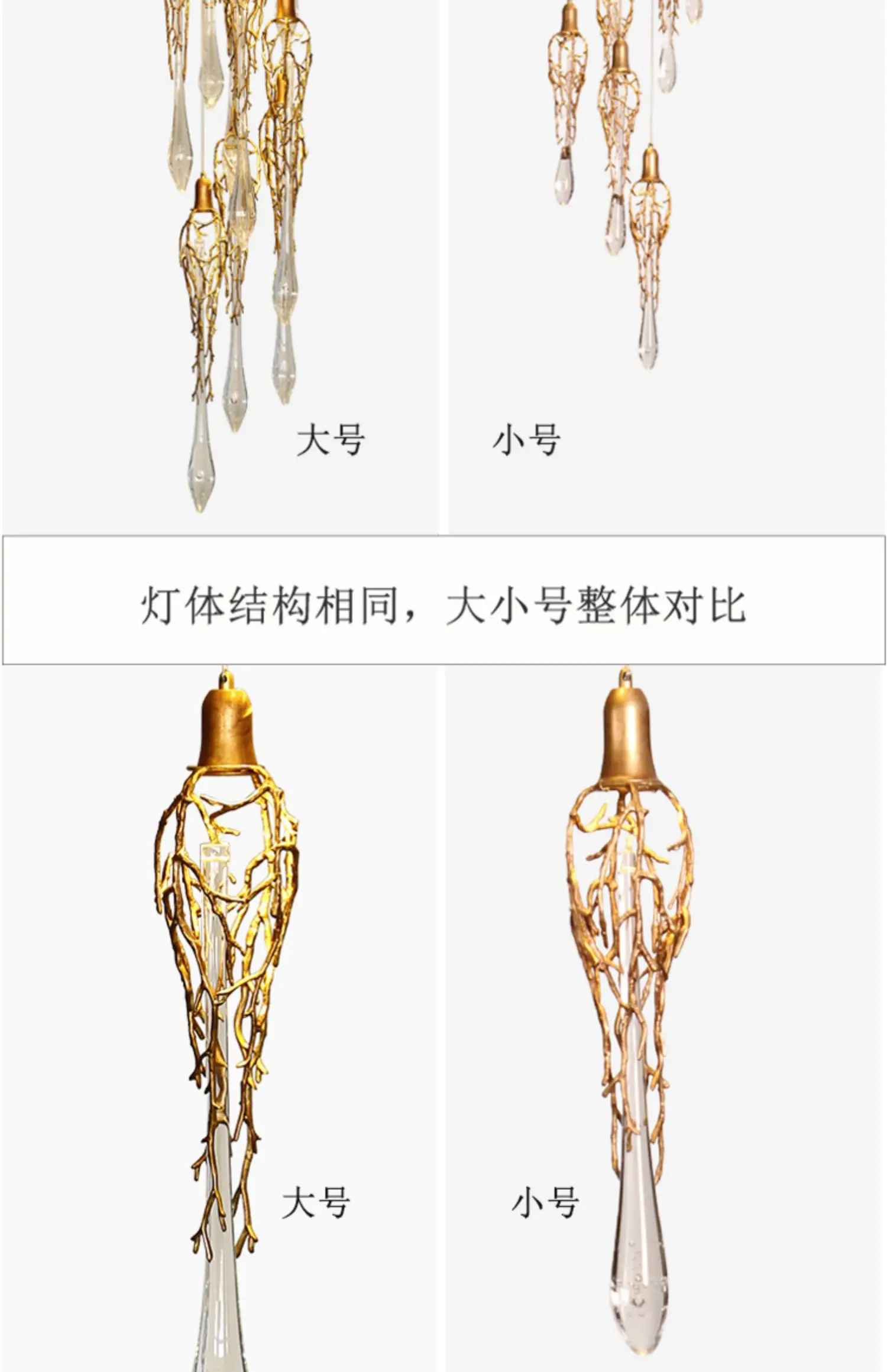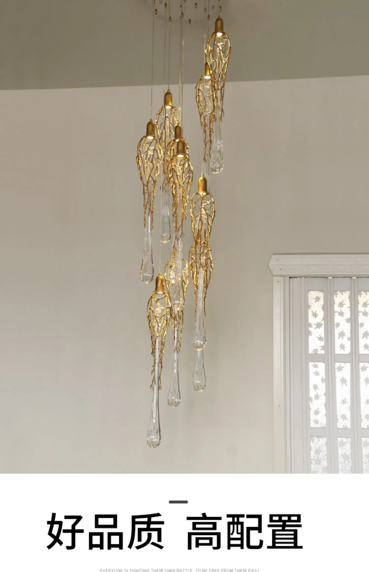 Nordic all copper branch dining room pendant lamp Post modern simple villa Living room lamp Creative duplex staircase long penda