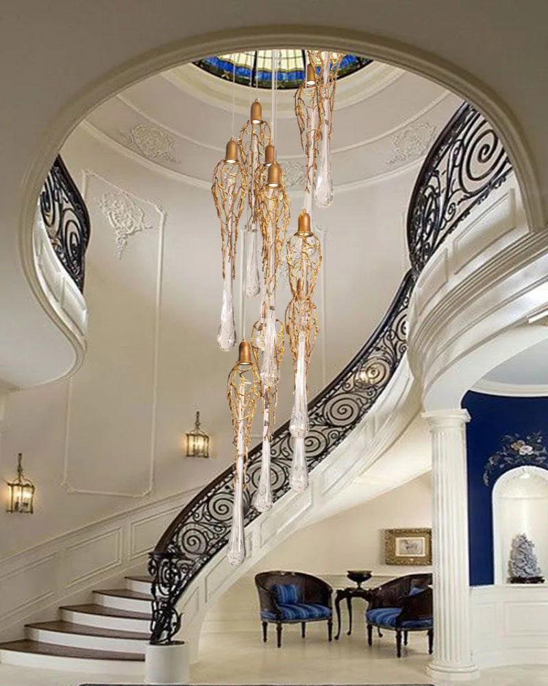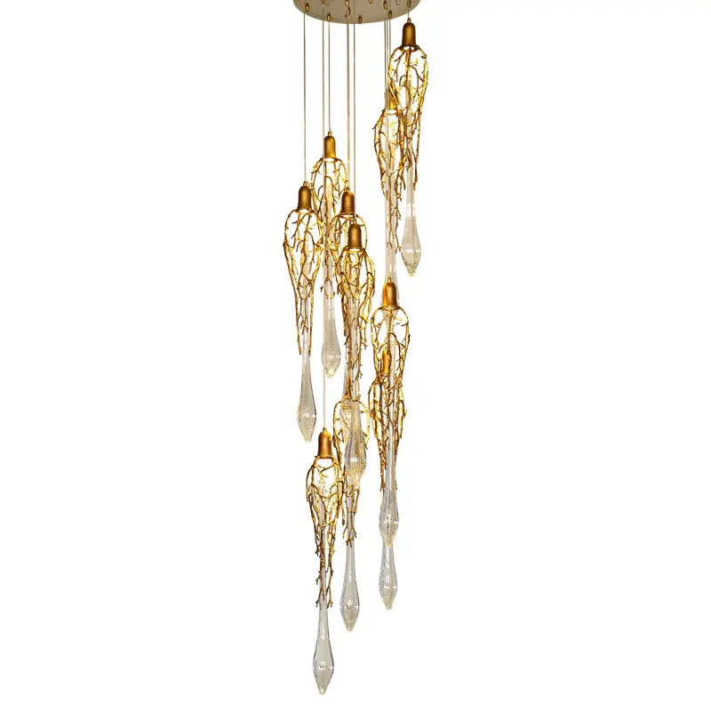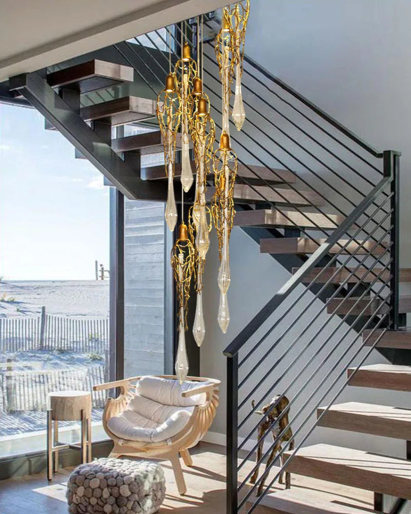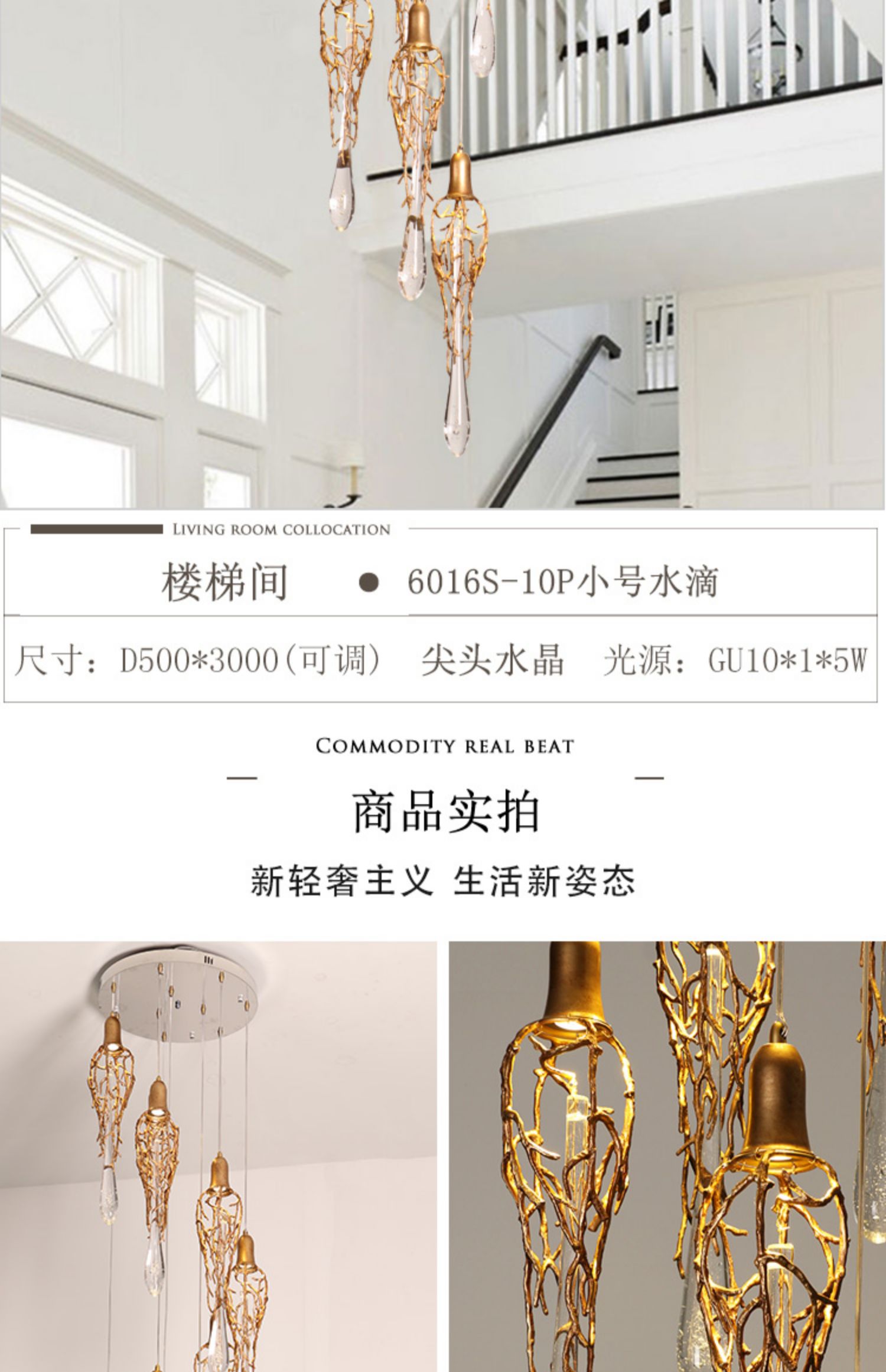 Nordic all copper branch dining room pendant lamp Post modern simple villa Living room lamp Creative duplex staircase long penda
