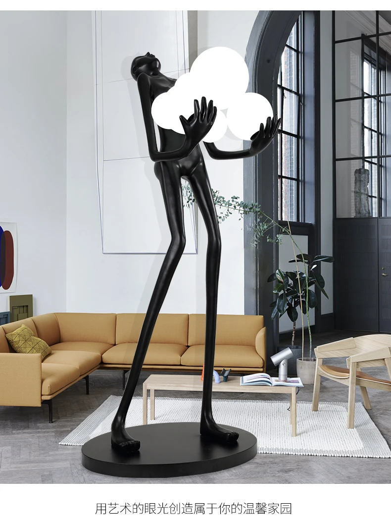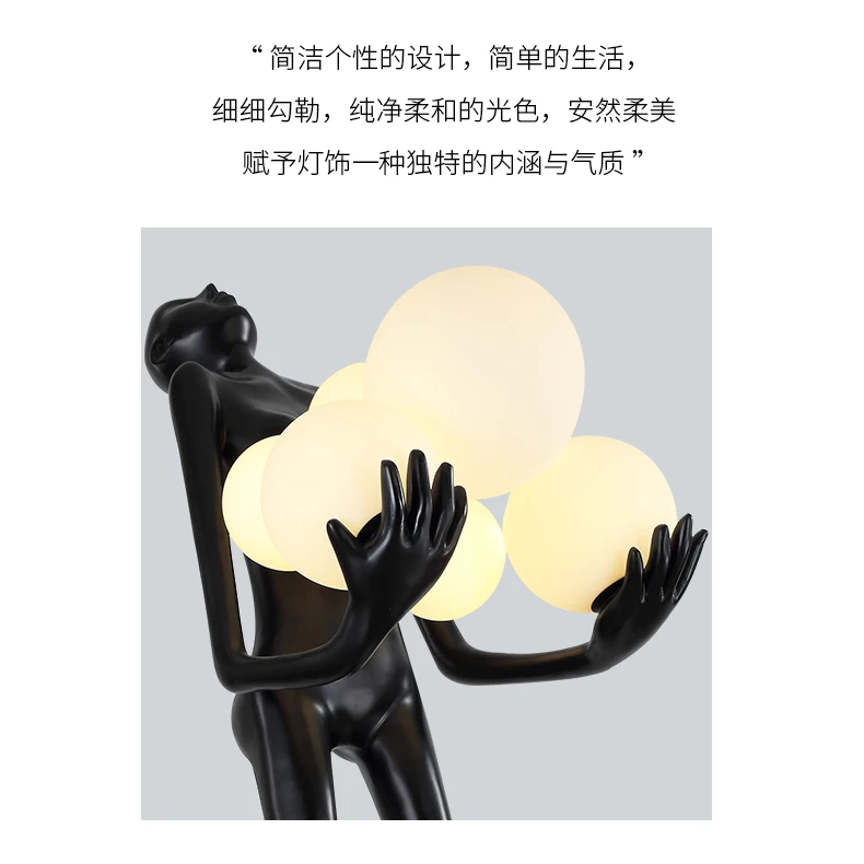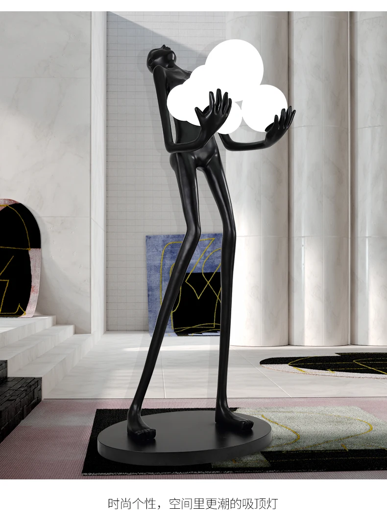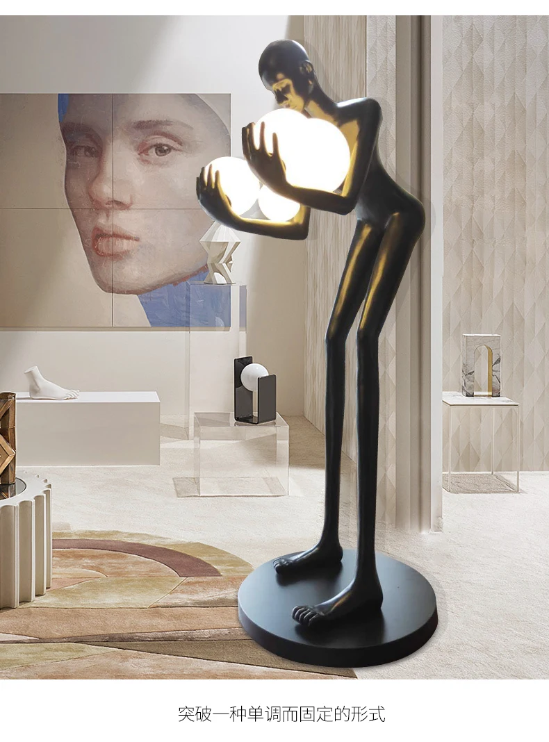 Nordic humanoid sculpture floor lamp creative ball holding designer exhibition hall, hotel sales office, character decoration st