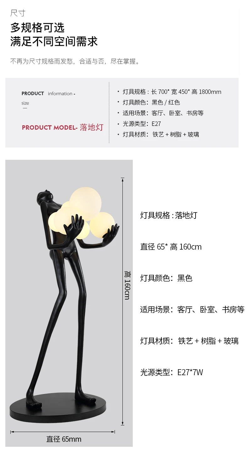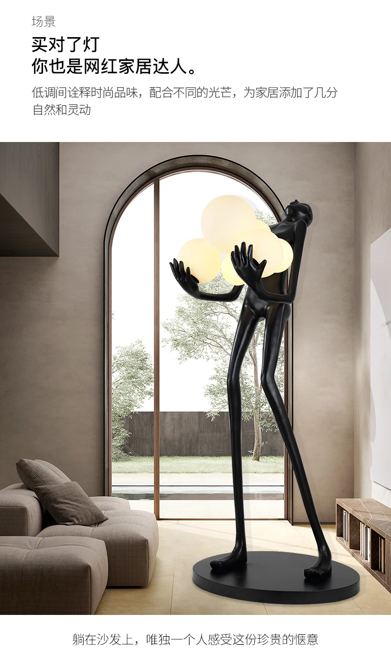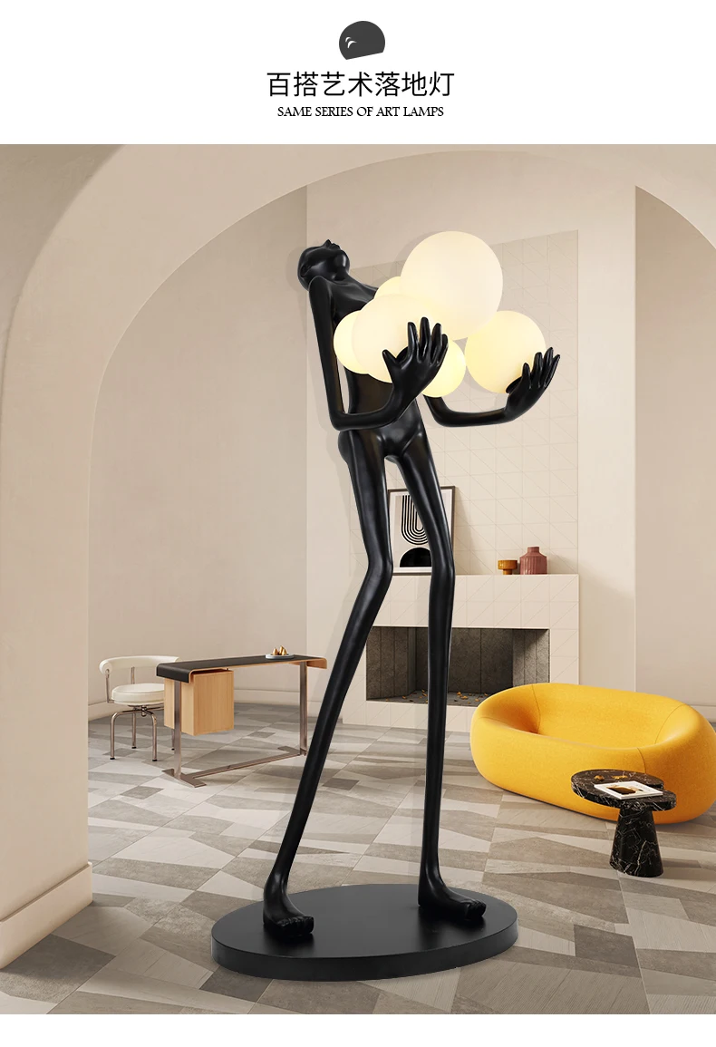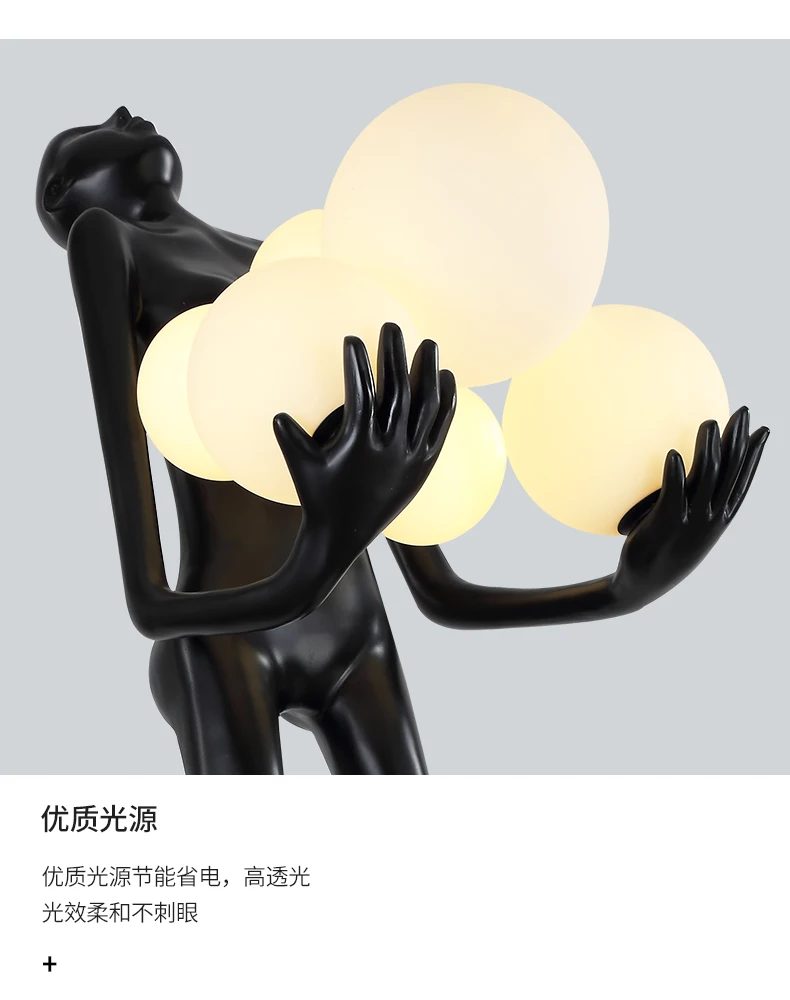 Nordic humanoid sculpture floor lamp creative ball holding designer exhibition hall, hotel sales office, character decoration st