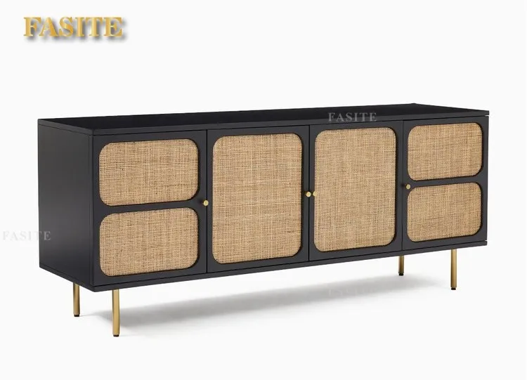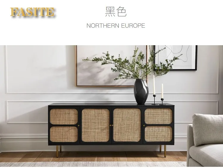 Nordic solid wood TV cabinet, living room, rattan weaving, simple dining cabinet, tea and water cabinet, small unit