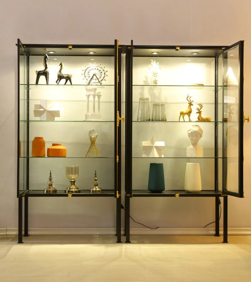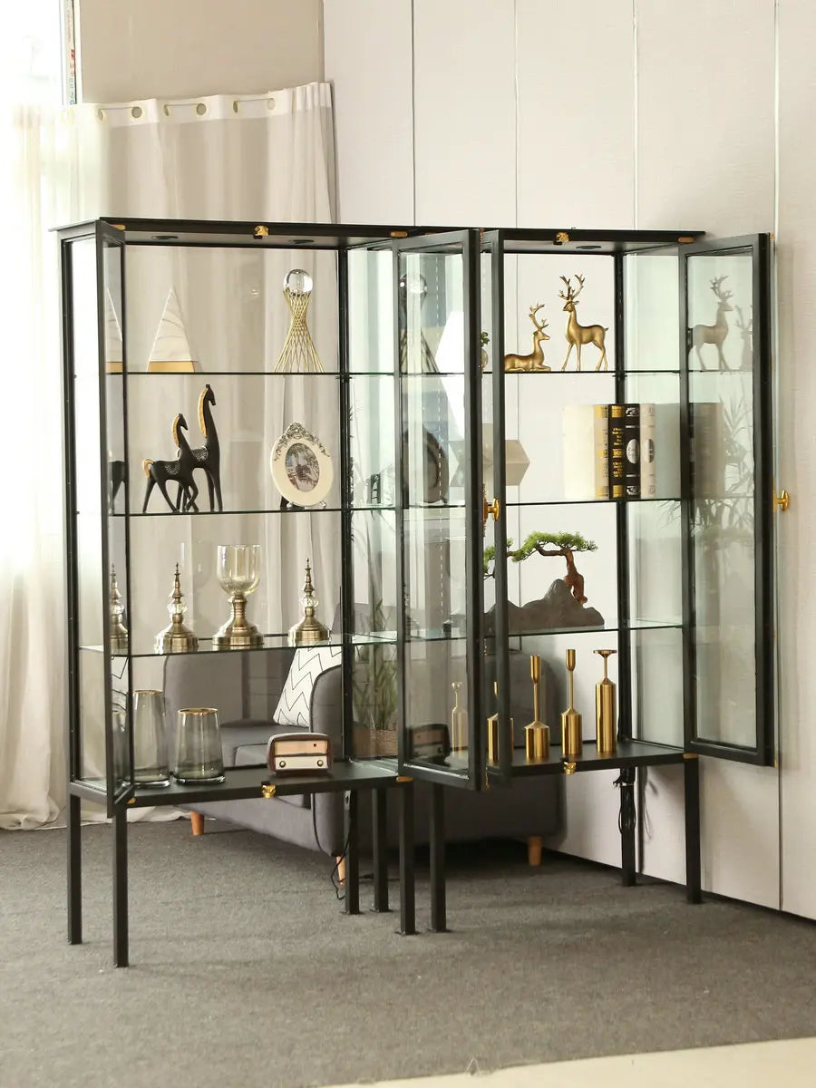 Nordic transparent glass display cabinet with lights, Lego collection cabinet, iron art wine cabinet, boutique display cabinet,