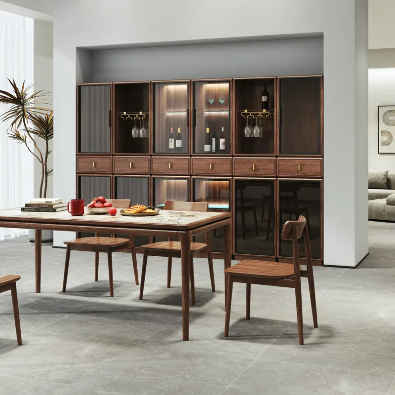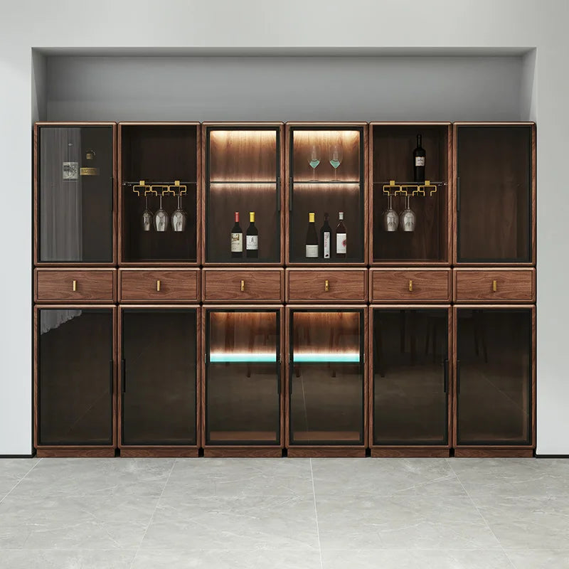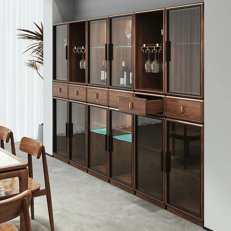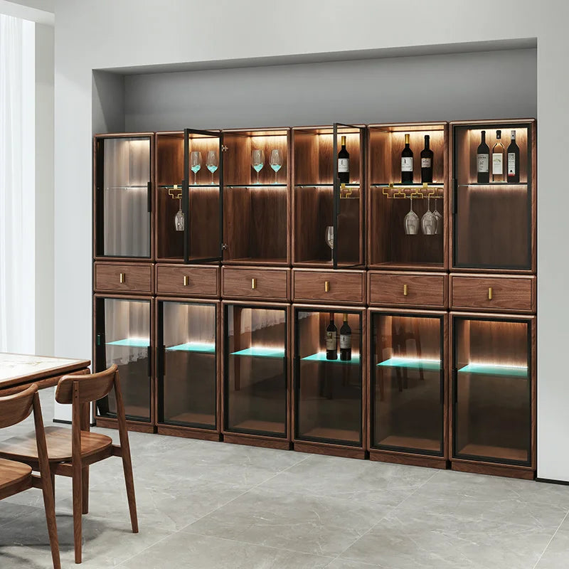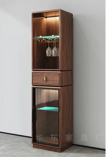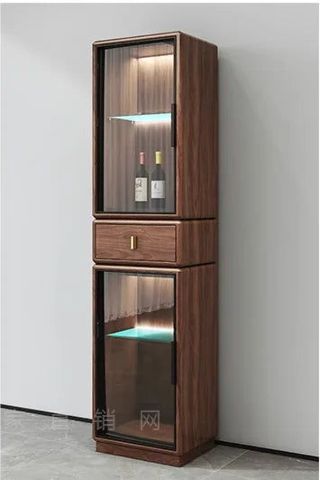 North American black walnut wood wine cabinet, living room, Italian style light luxury, high-end solid wood glass door cabinet,