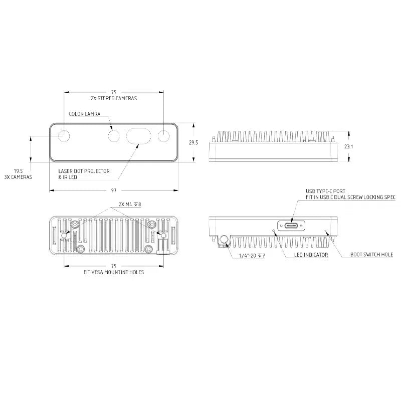 Installation hole 1/4 standard tripod interface