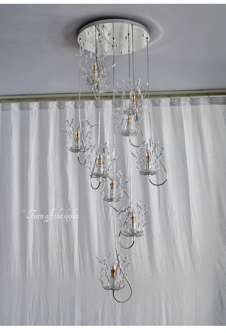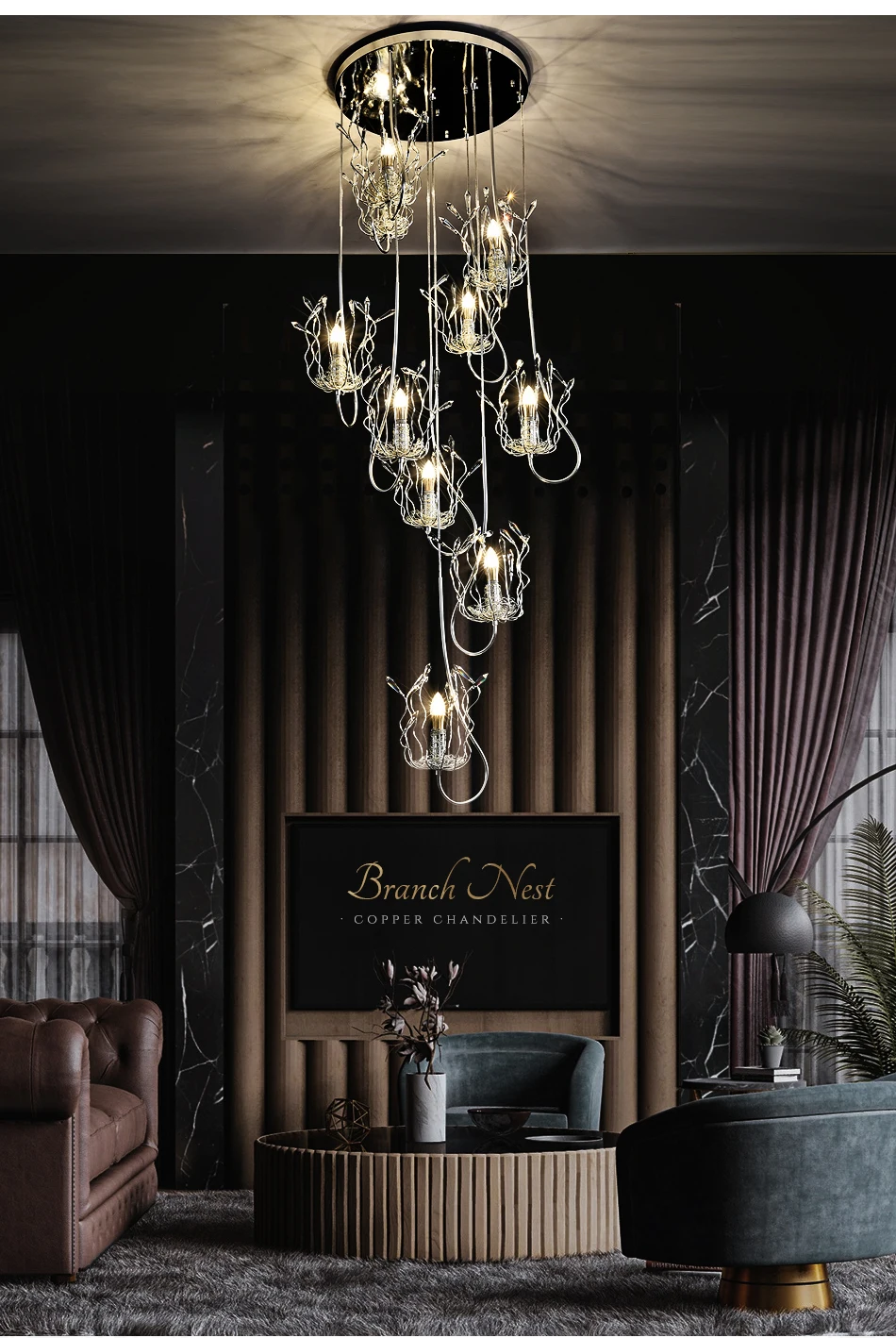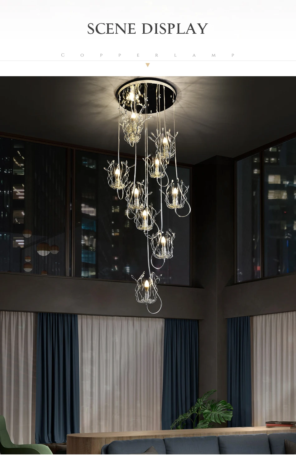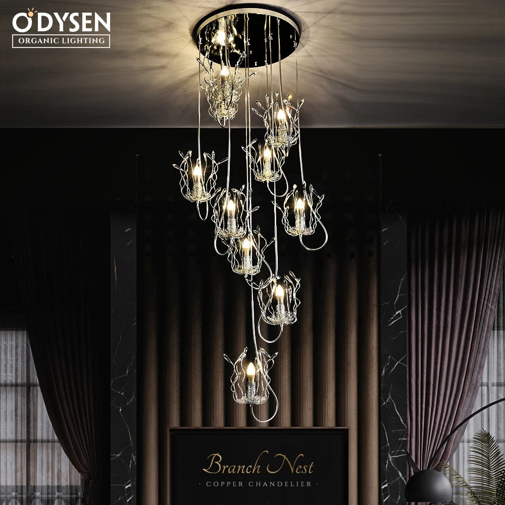 ODYSEN ART DECO Chandelier for Staircase Villa Hallway Long Led Copper Creative Lobby Loft Light Silver Crysta Lamp Large House