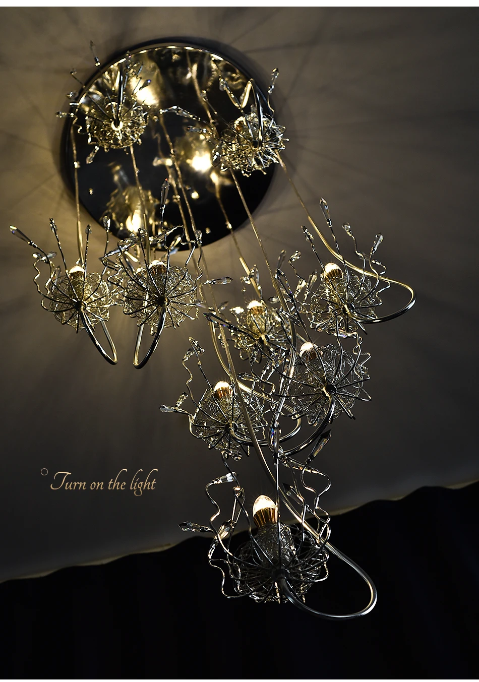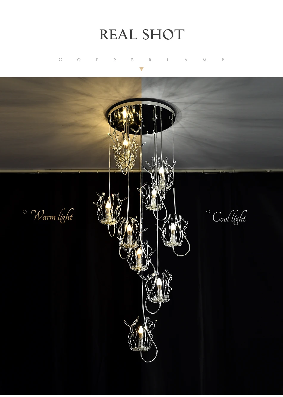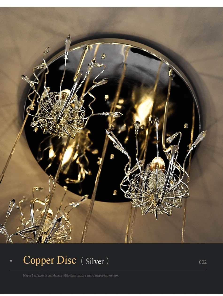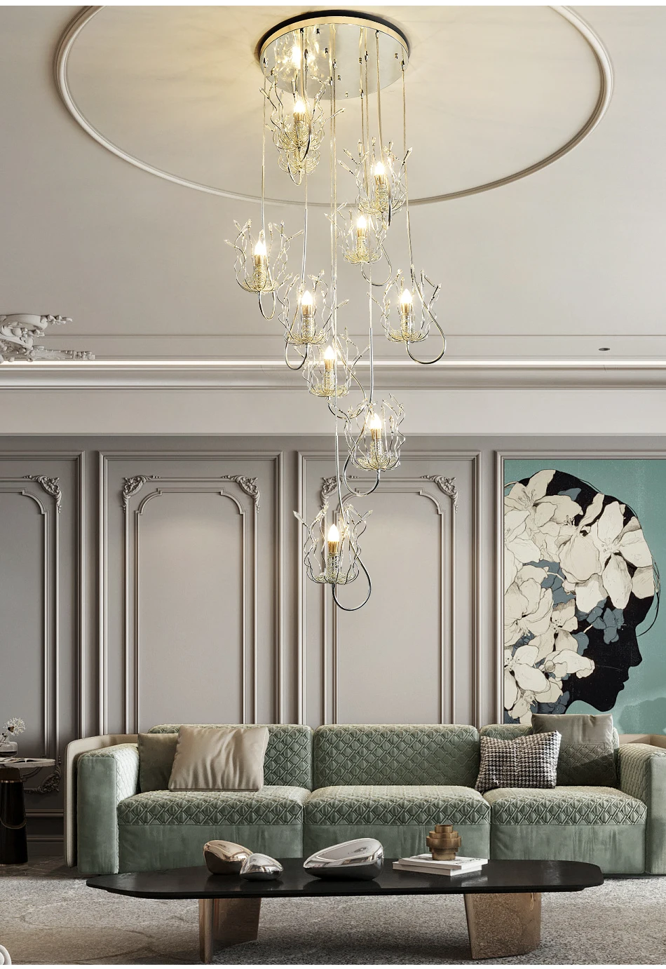 ODYSEN ART DECO Chandelier for Staircase Villa Hallway Long Led Copper Creative Lobby Loft Light Silver Crysta Lamp Large House