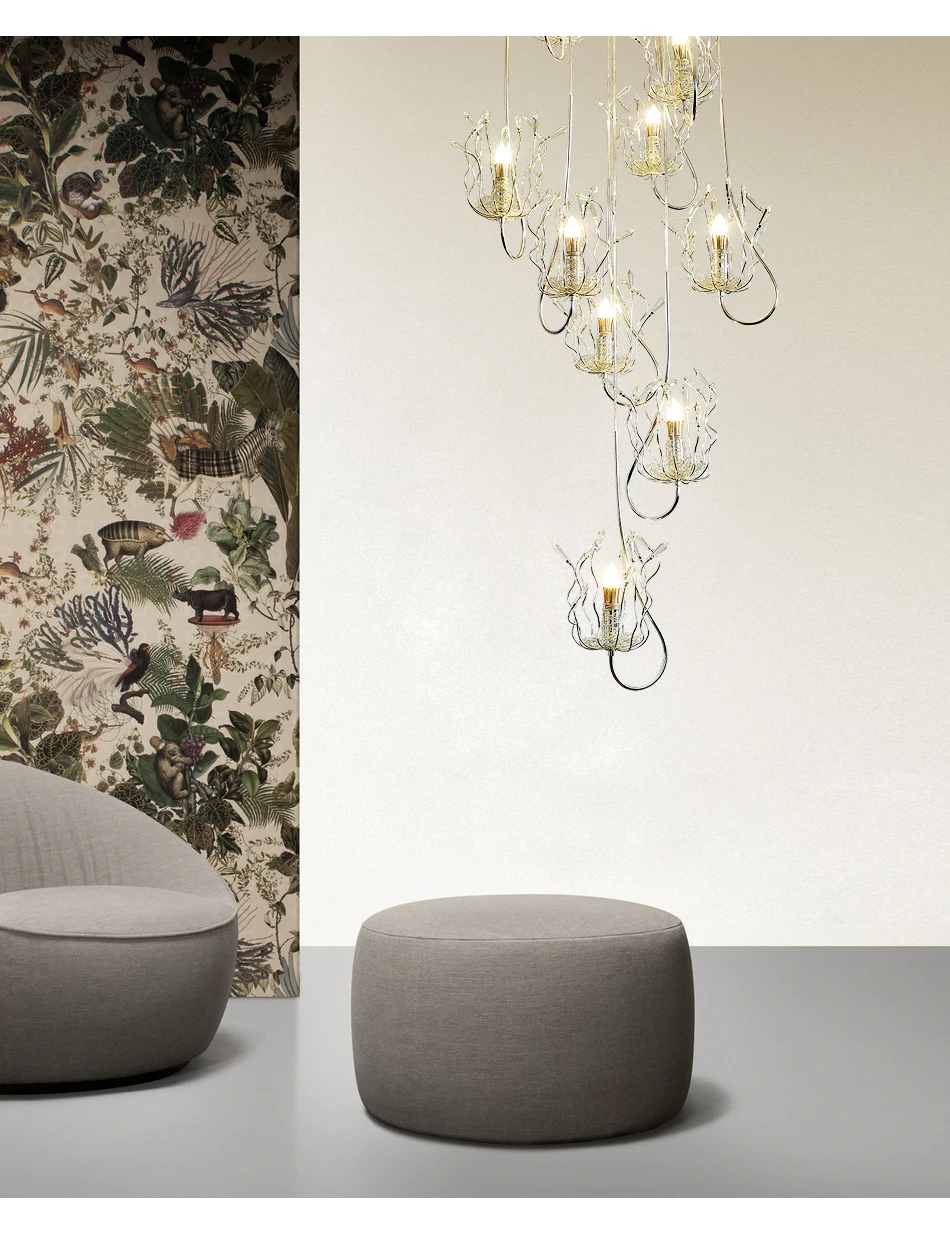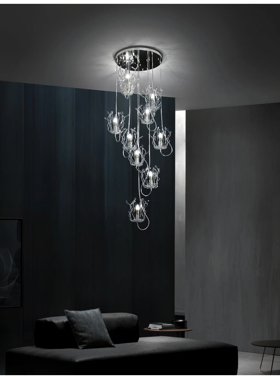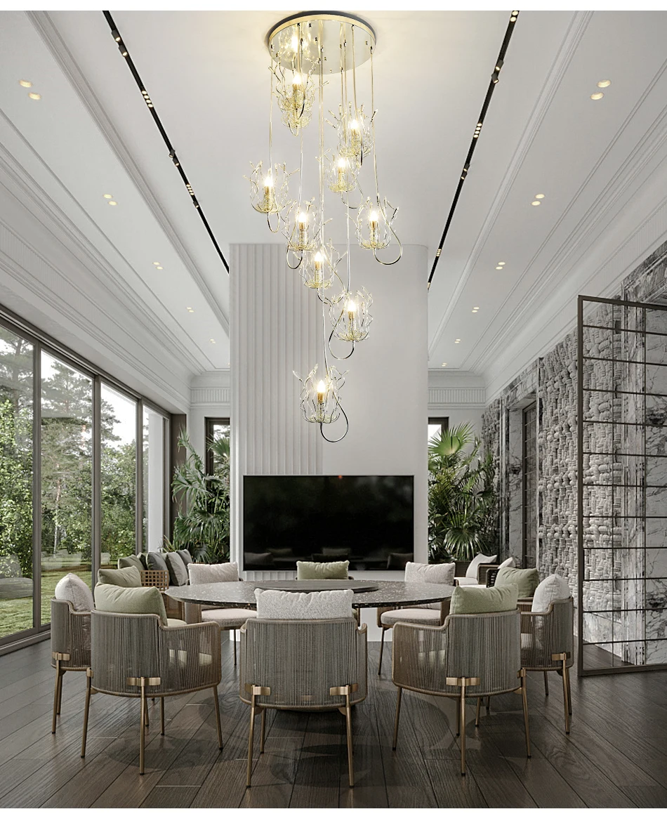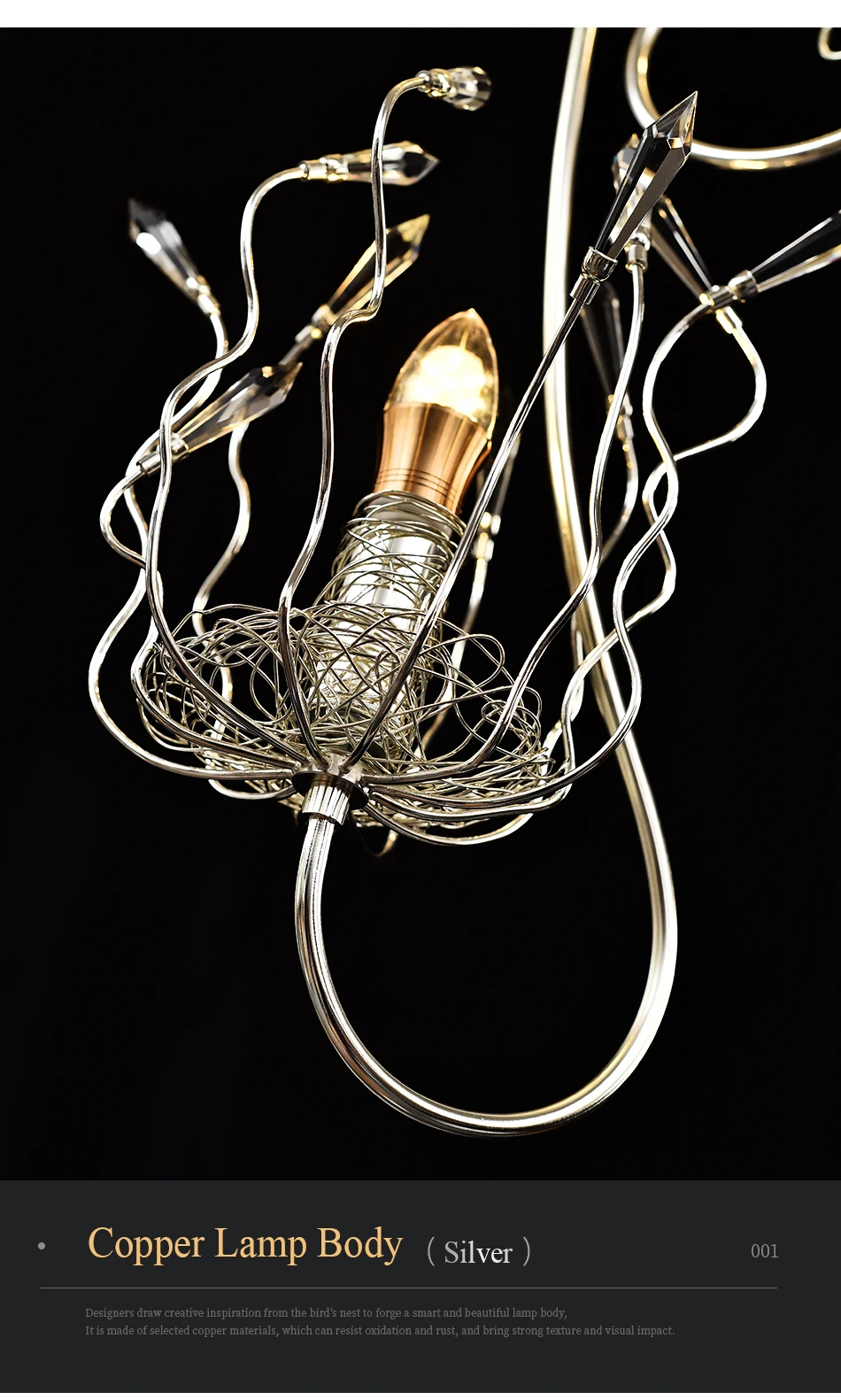 ODYSEN ART DECO Chandelier for Staircase Villa Hallway Long Led Copper Creative Lobby Loft Light Silver Crysta Lamp Large House
