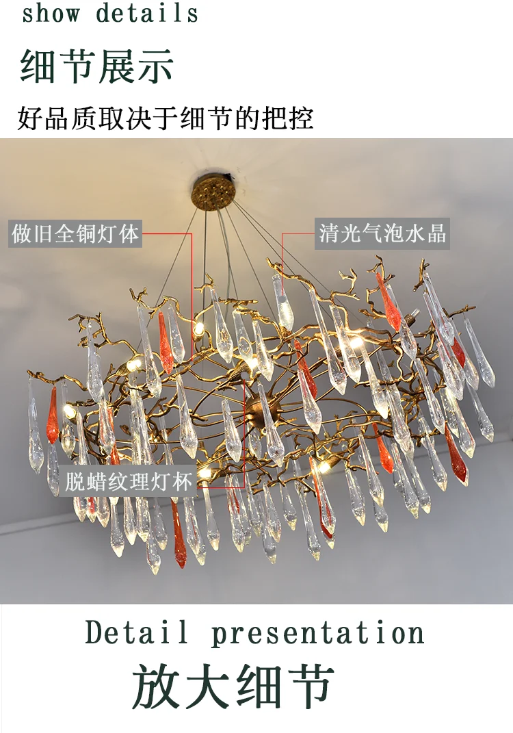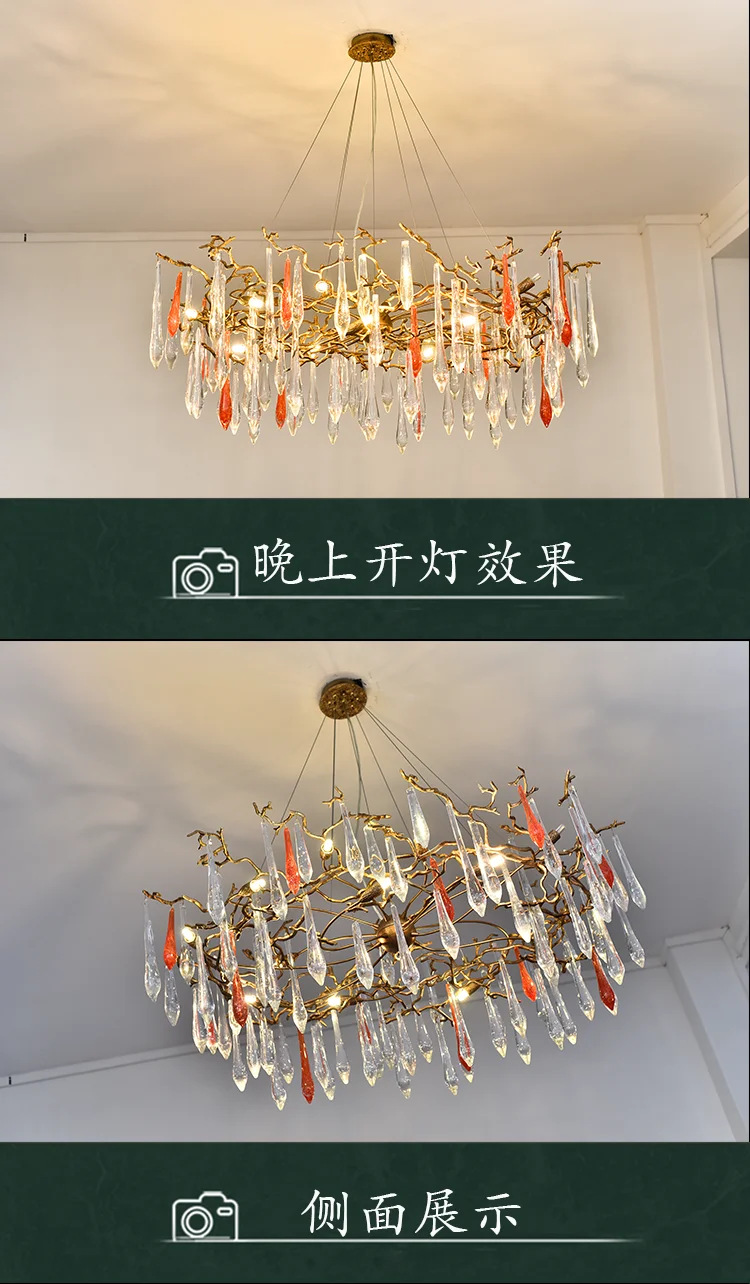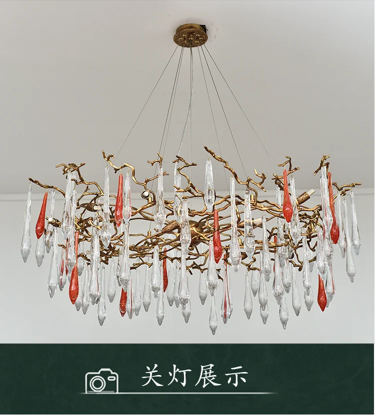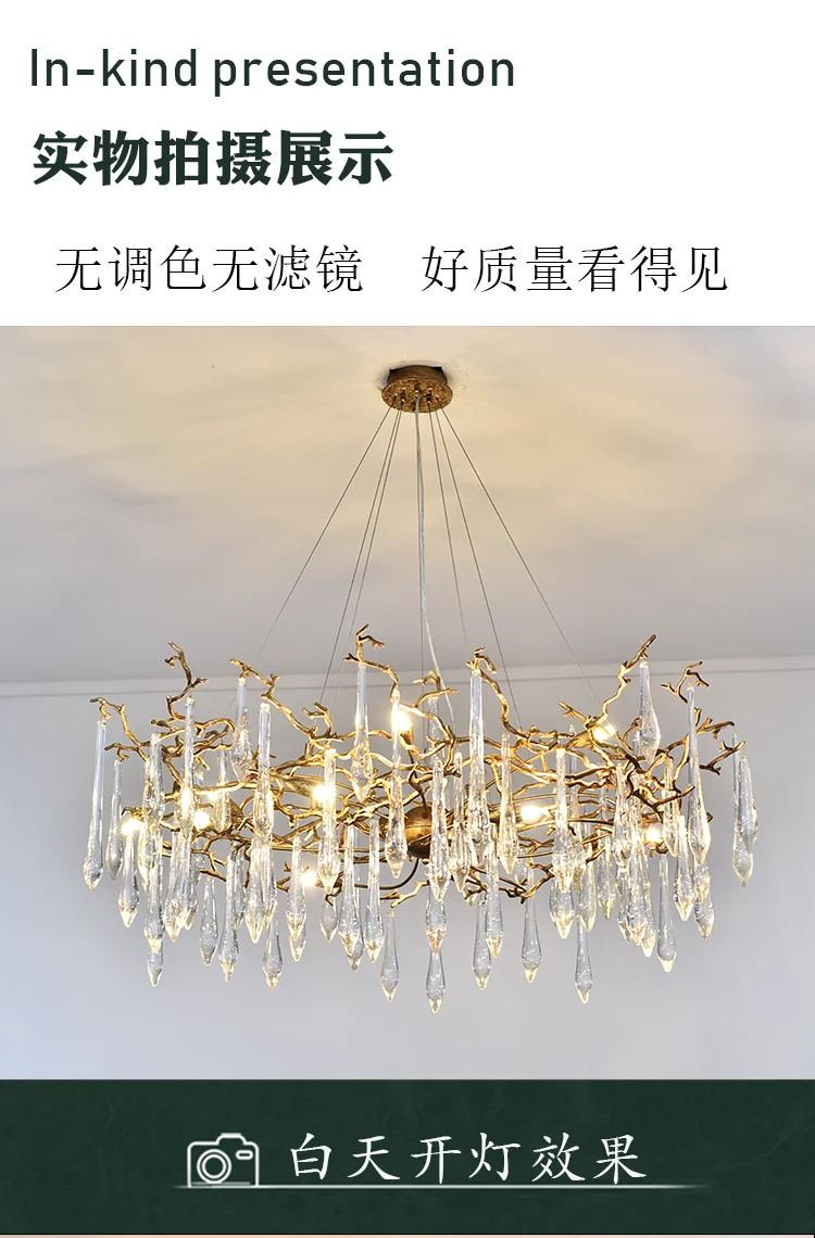 ODYSEN ART DECO Copper Chandelier Creative Crystal Living Room Bedroom Decoration Lighting Fixture Tree Branches Villa Lobby