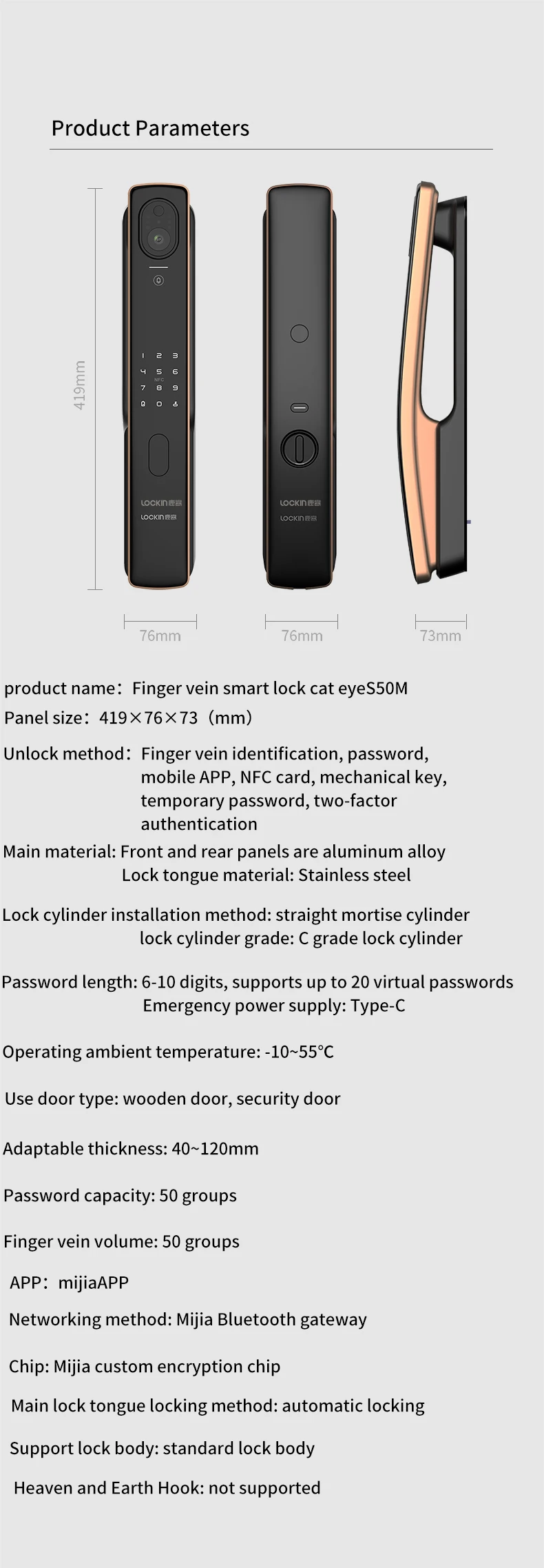 OKLAR Smart Fingerprint Biometric Digital Electronic Lock Wifi With Camera Intelligent Door Lock Mijia Mihome S50M-3-Y