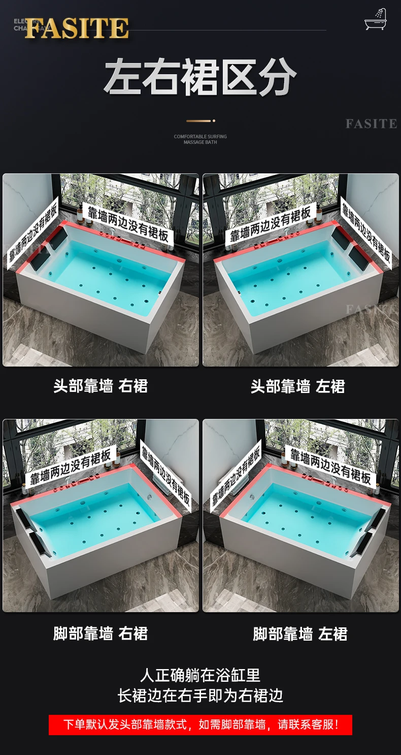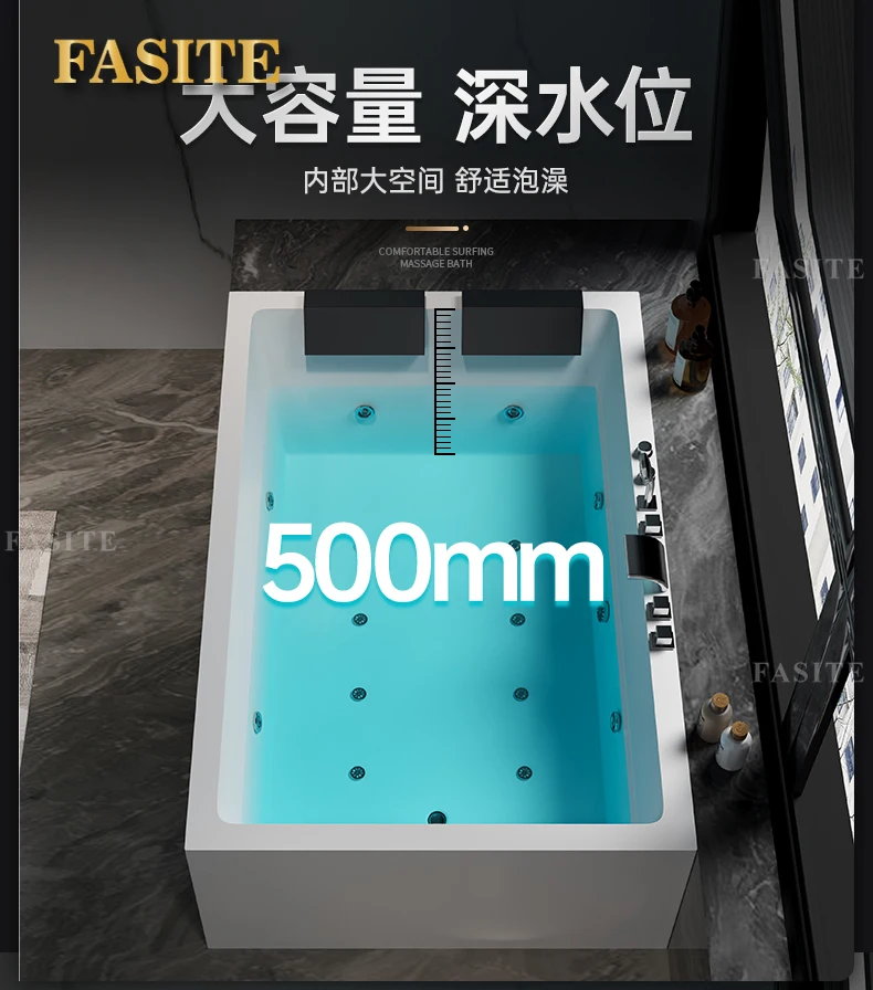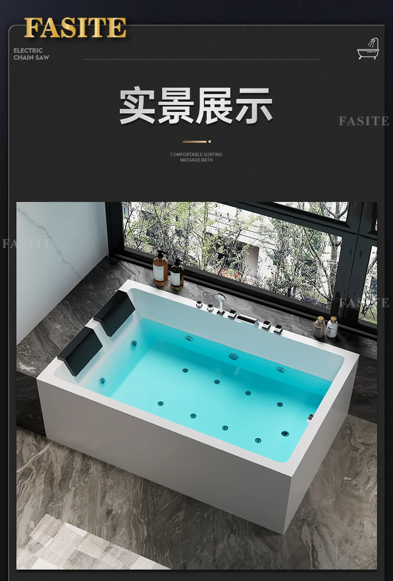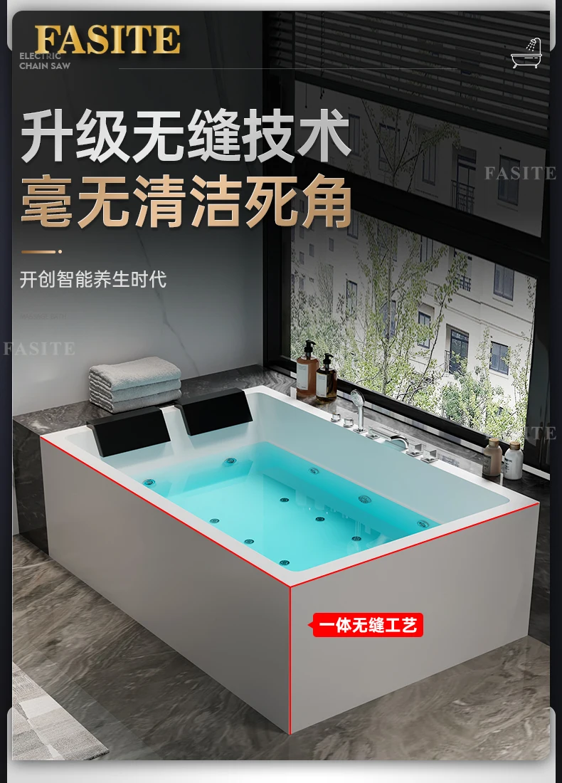 One piece seamless acrylic massage bathtub for two people, large space hotel home thermostatic bathtub