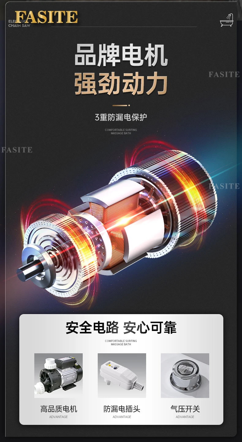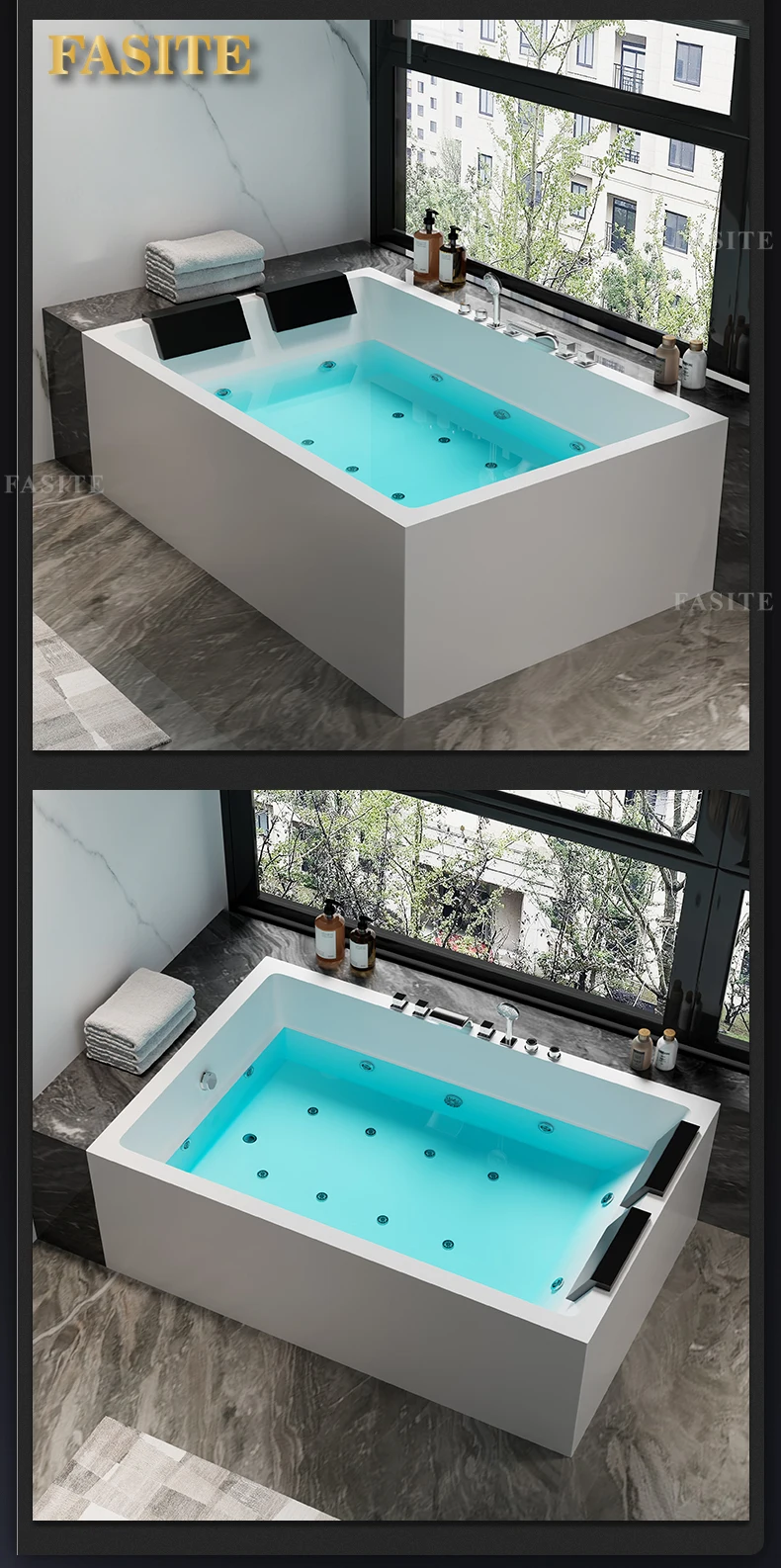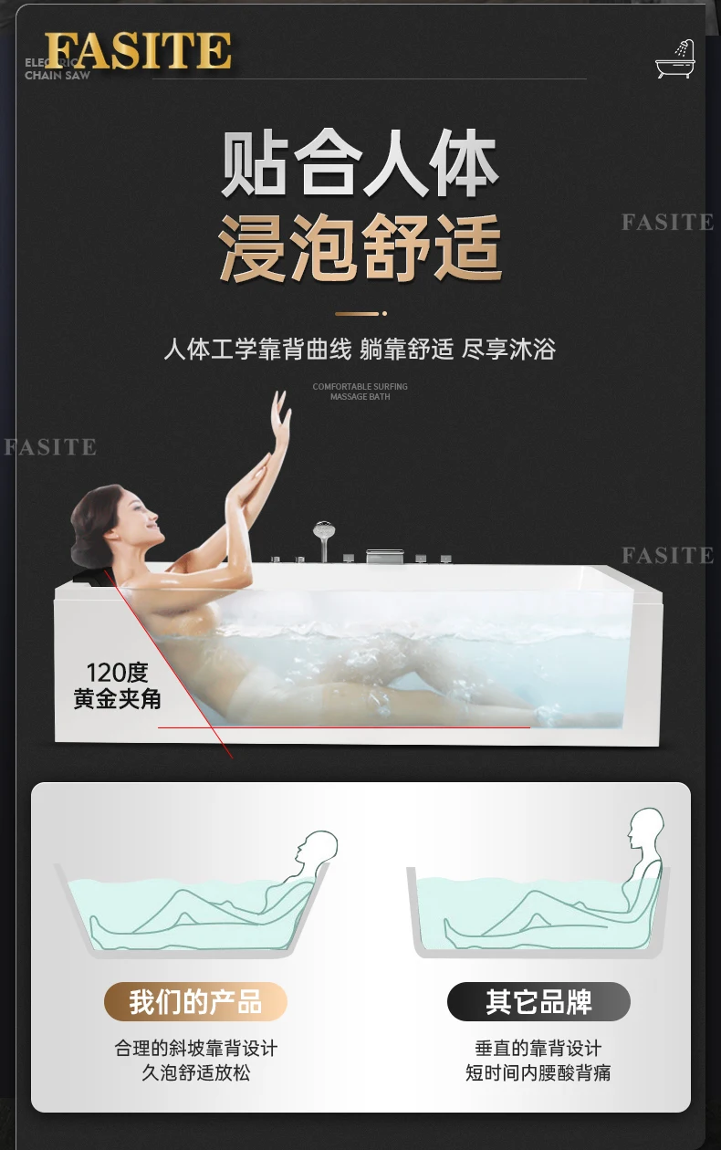 One piece seamless acrylic massage bathtub for two people, large space hotel home thermostatic bathtub