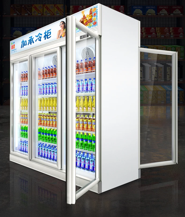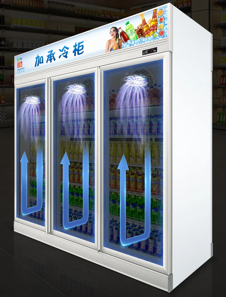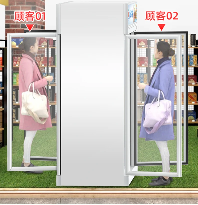 Open the front and rear doors of beverage cabinets, display cabinets, refrigerated fruit fresh-keeping cabinets, vertical freeze