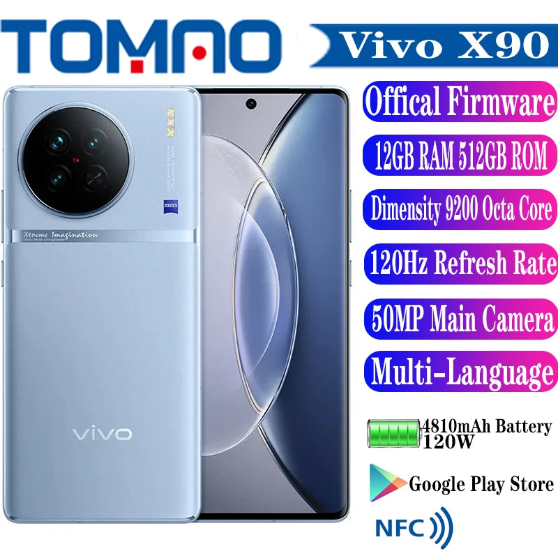 Original Official New Vivo X90 5G Mobile Phone Dimensity 9200 6.78" 120Hz Android 13 50MP Rear Three Camera 4810mAh 120W NFC
