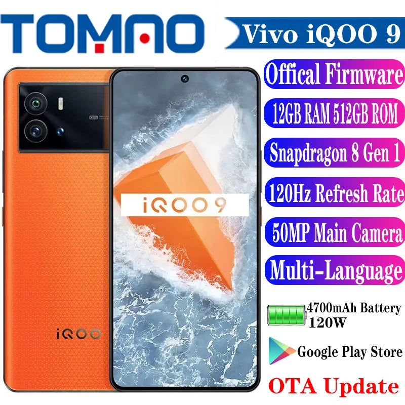 Original Official Vivo iQOO 9 5G Mobile Phone Snapdragon 8 Gen 1 6.78" 120Hz E4 Screen 50MP Camera 4700mAh 120W Android 12 NFC