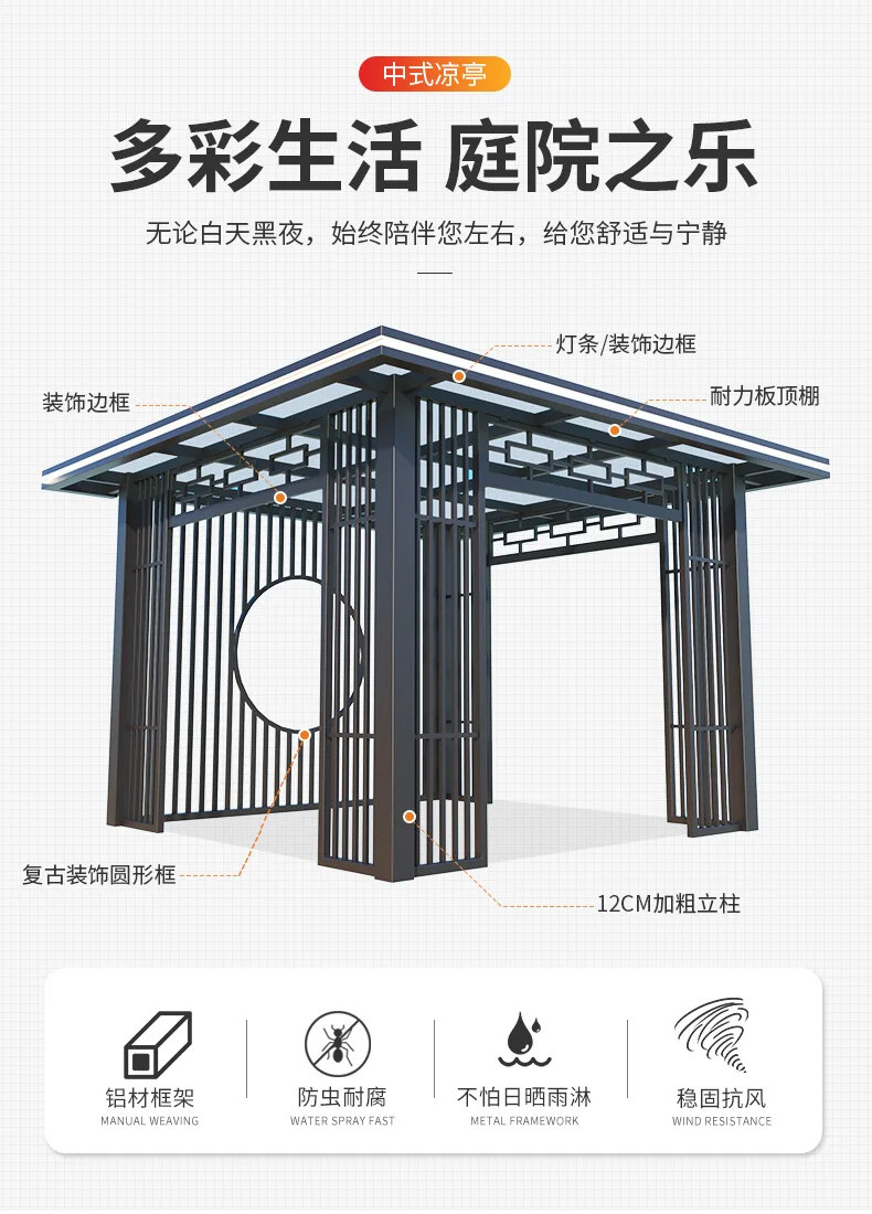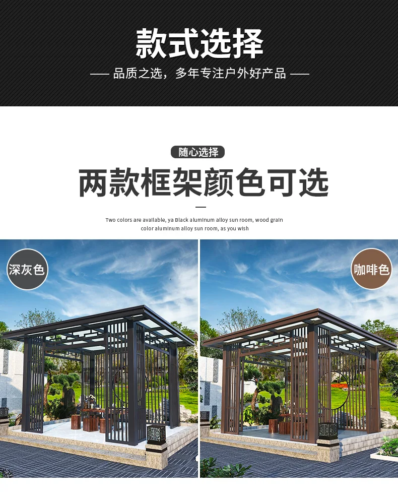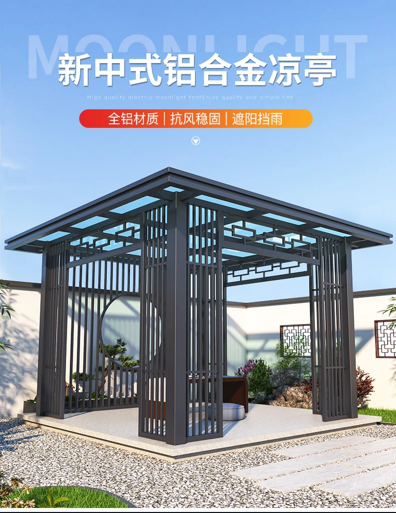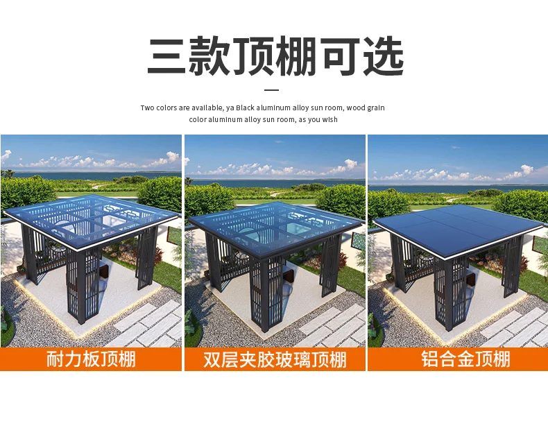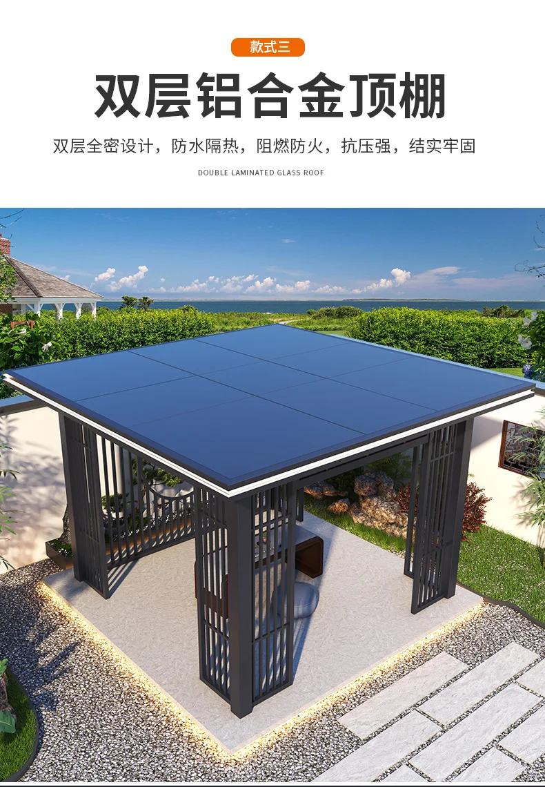 Outdoor aluminum alloy cool and sunny room, villa garden, outdoor leisure electric sunshade pavilion