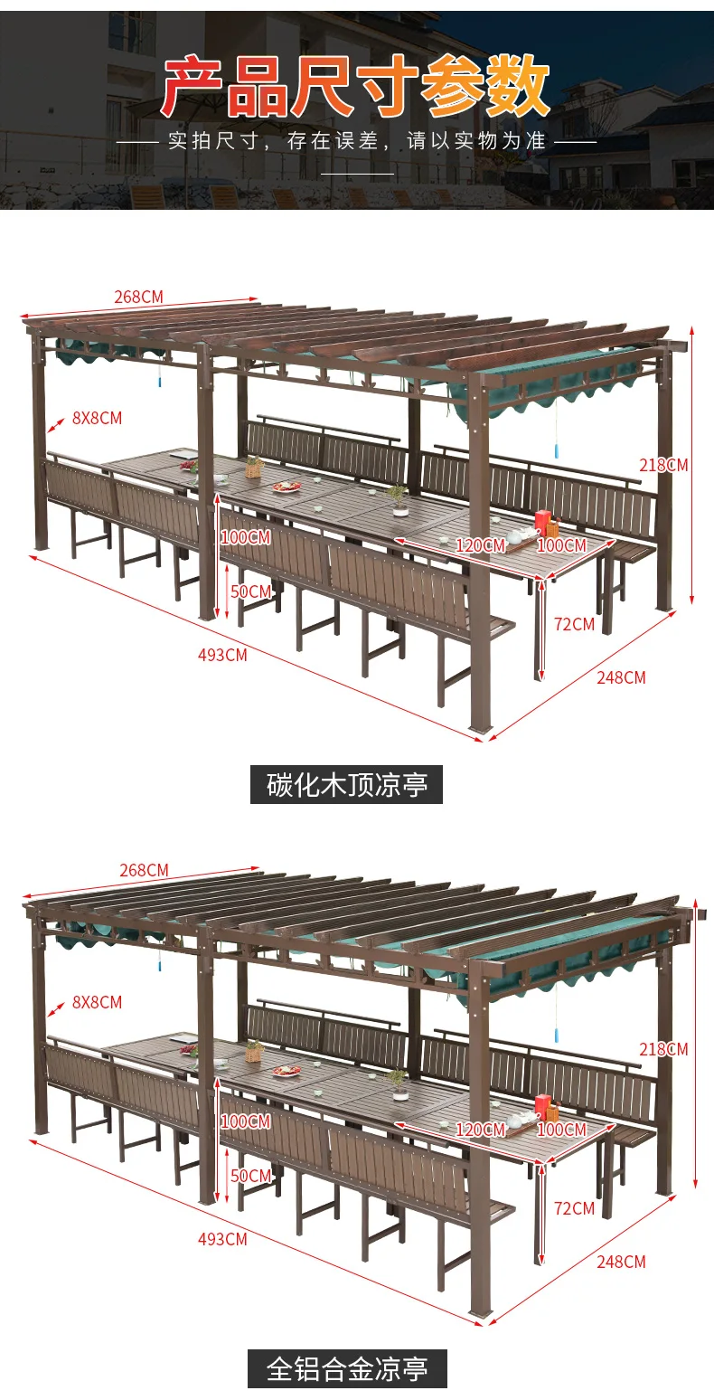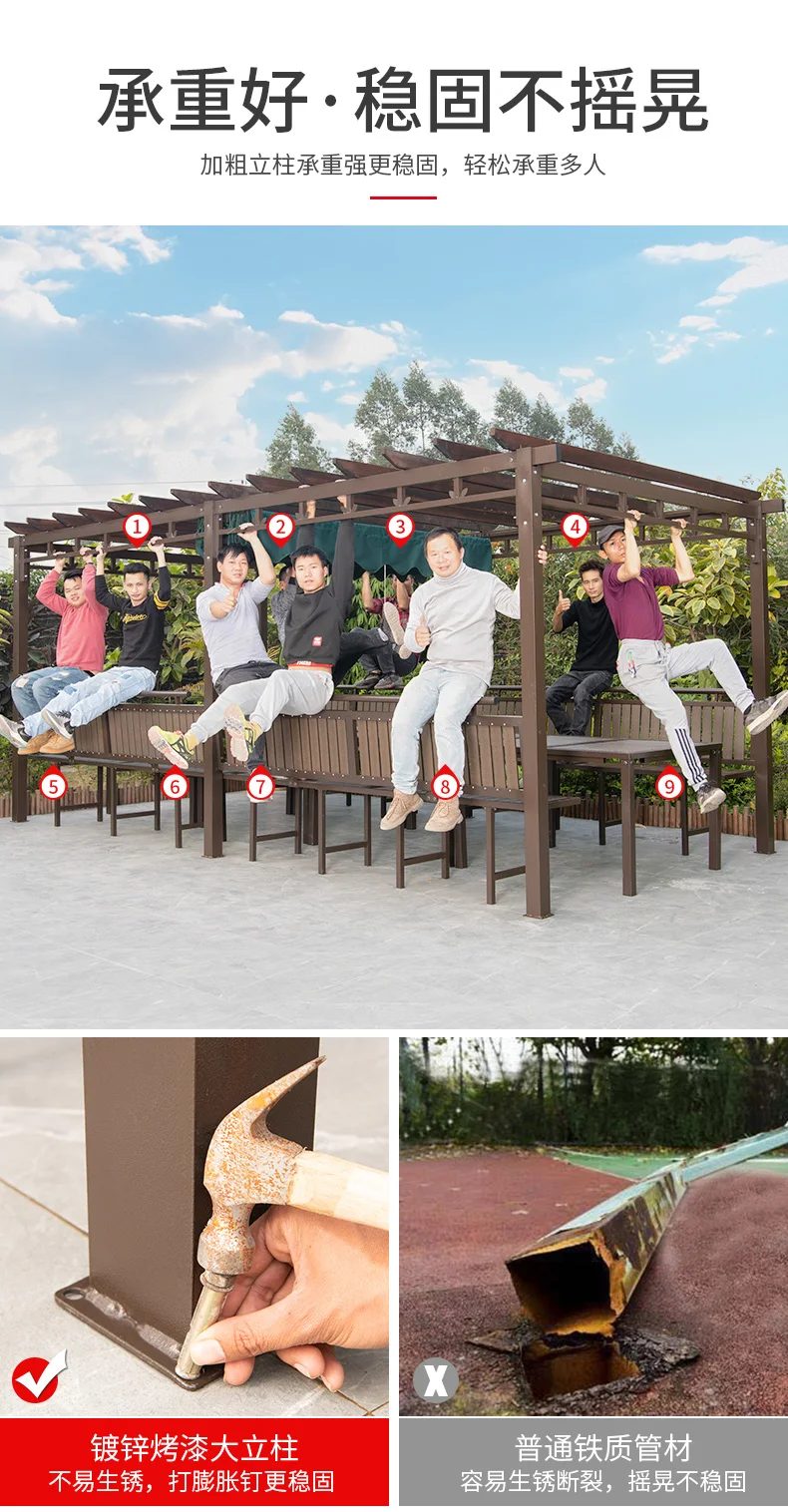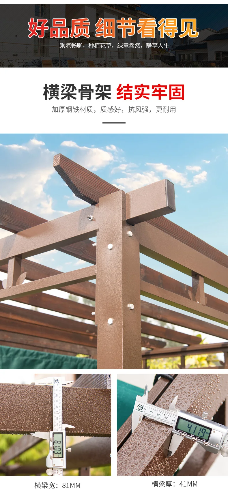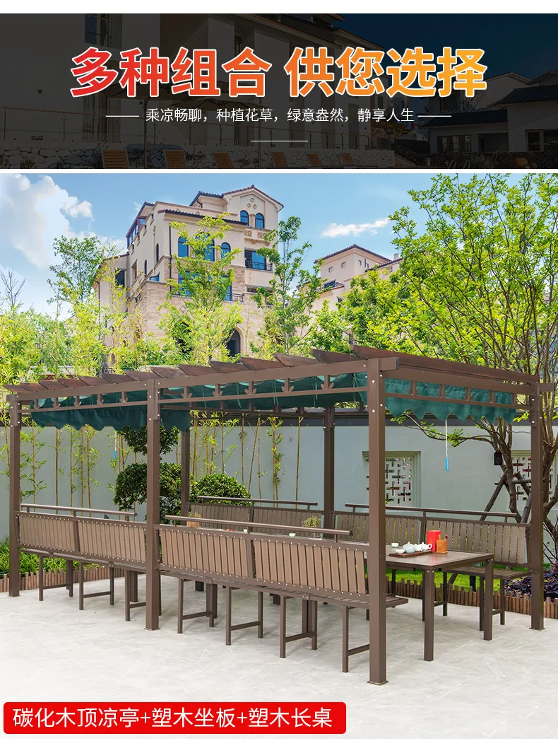Outdoor aluminum alloy sunshade, corridor, flower rack, carbonized wood leisure grape rack