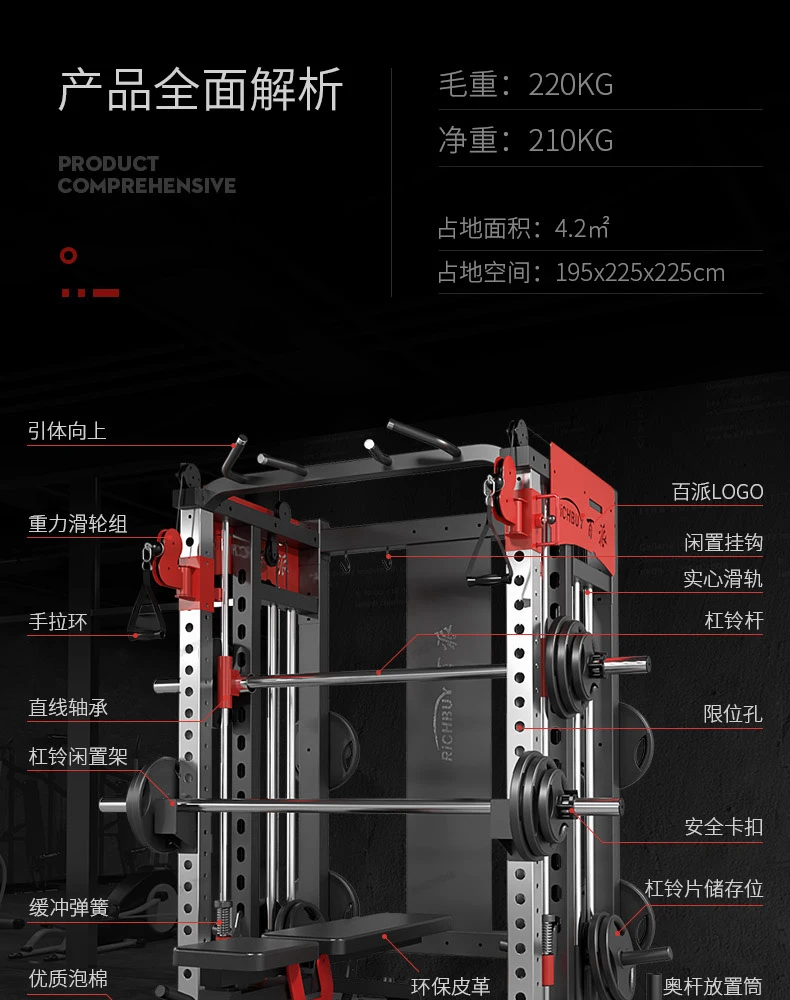 Outdoor fitness gantry, fitness home comprehensive trainer, fitness equipment, squat and push frame