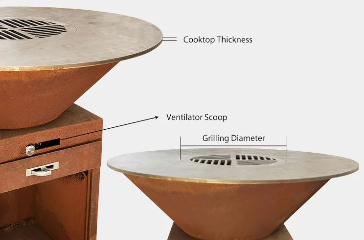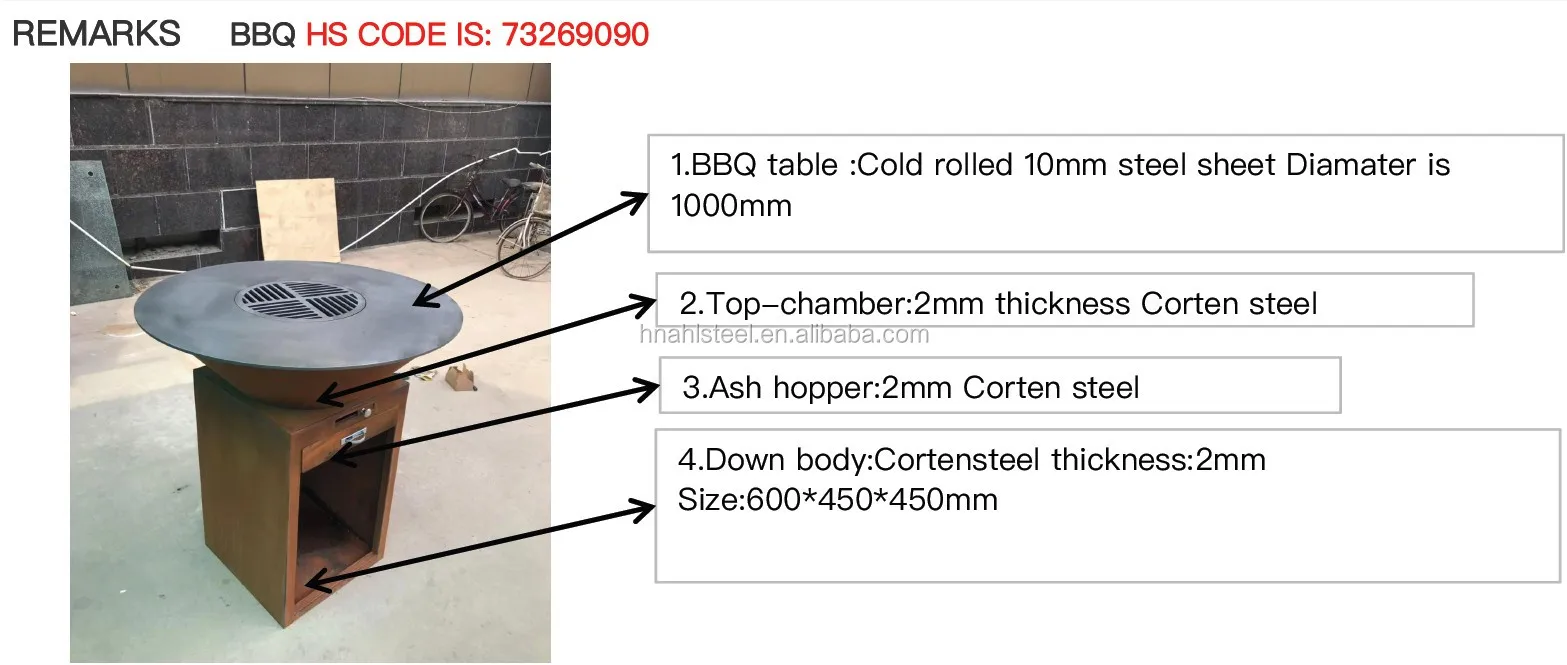 Customized BBQ Fire Table With Center Grate is made with good quality weathering corten steel material, you can adjust the BBQ height according to your need, this is very easy and convenient to realize.