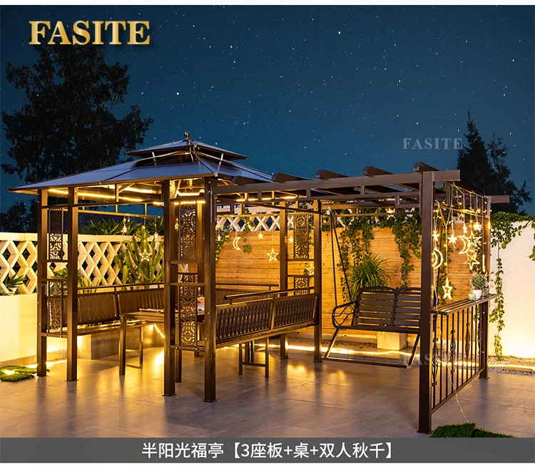 Outdoor gazebo, garden courtyard, awning, terrace, balcony, leisure pavilion, outdoor antiseptic wood
