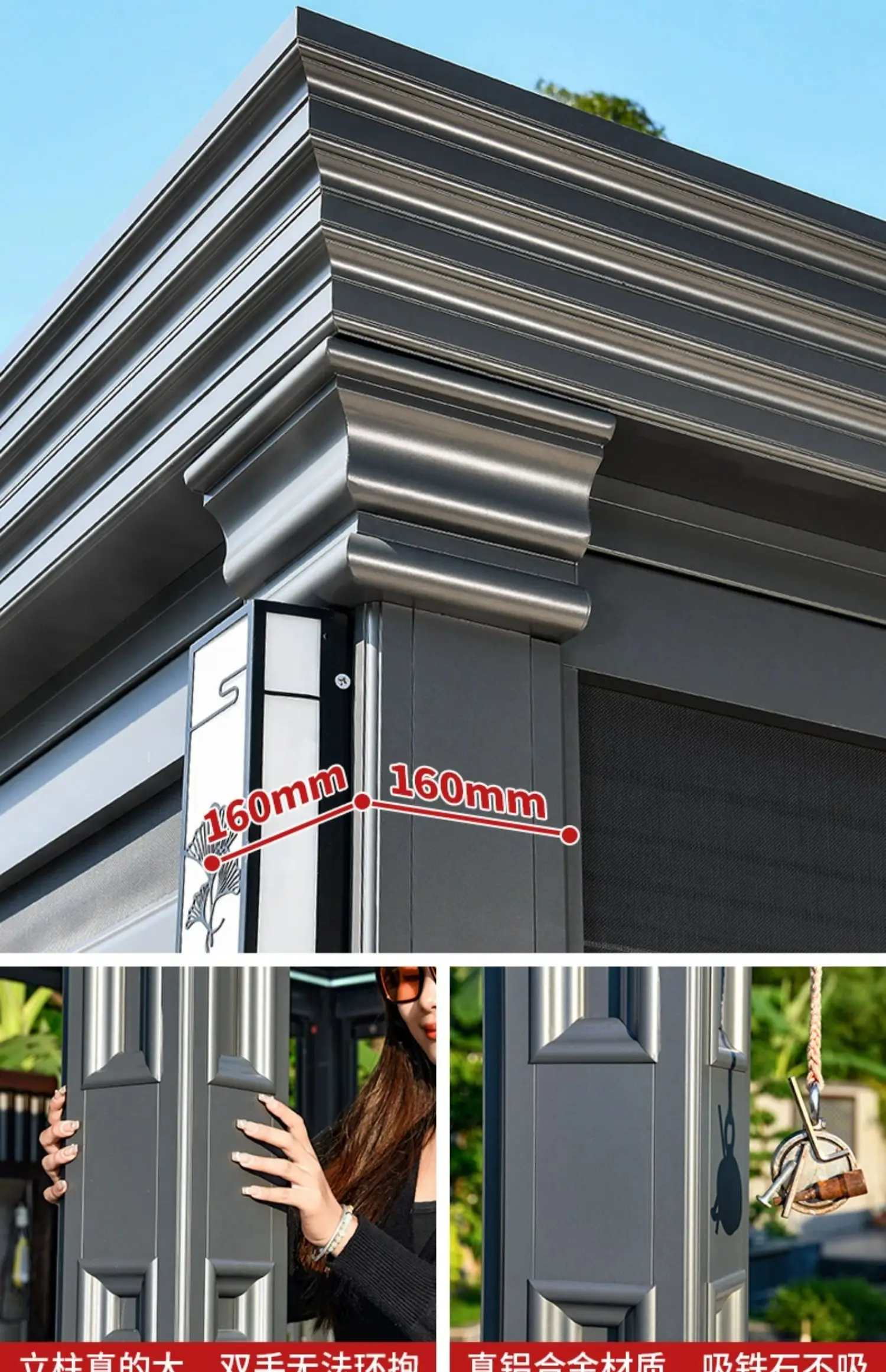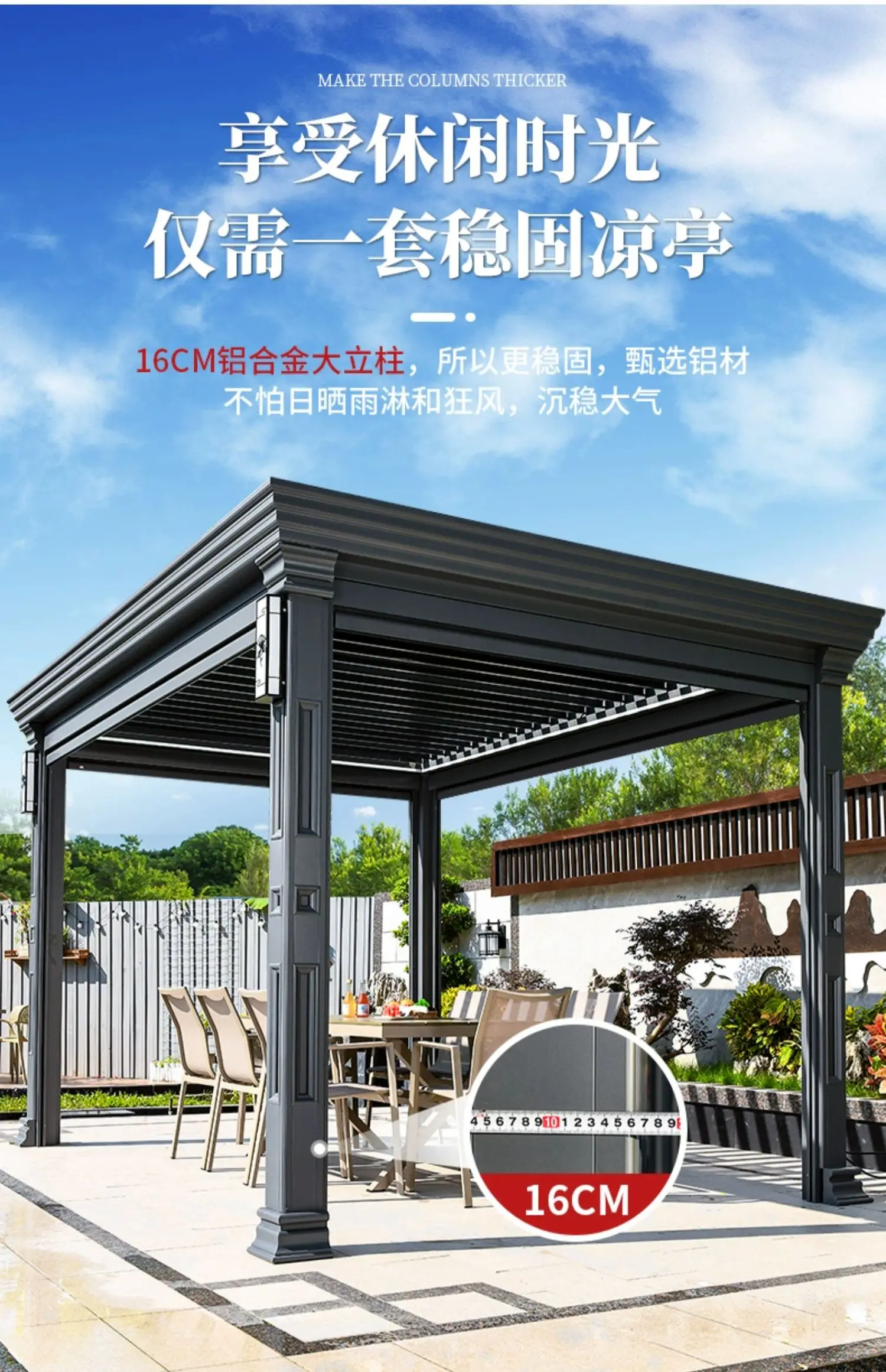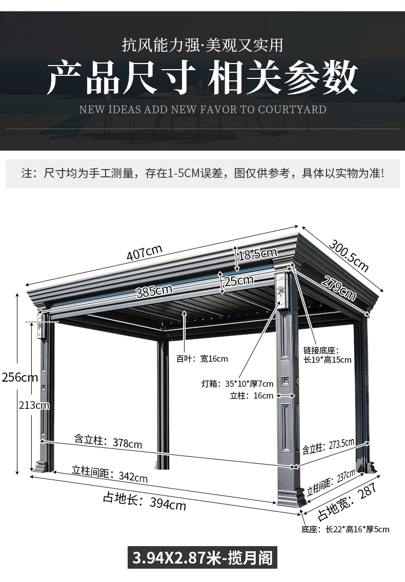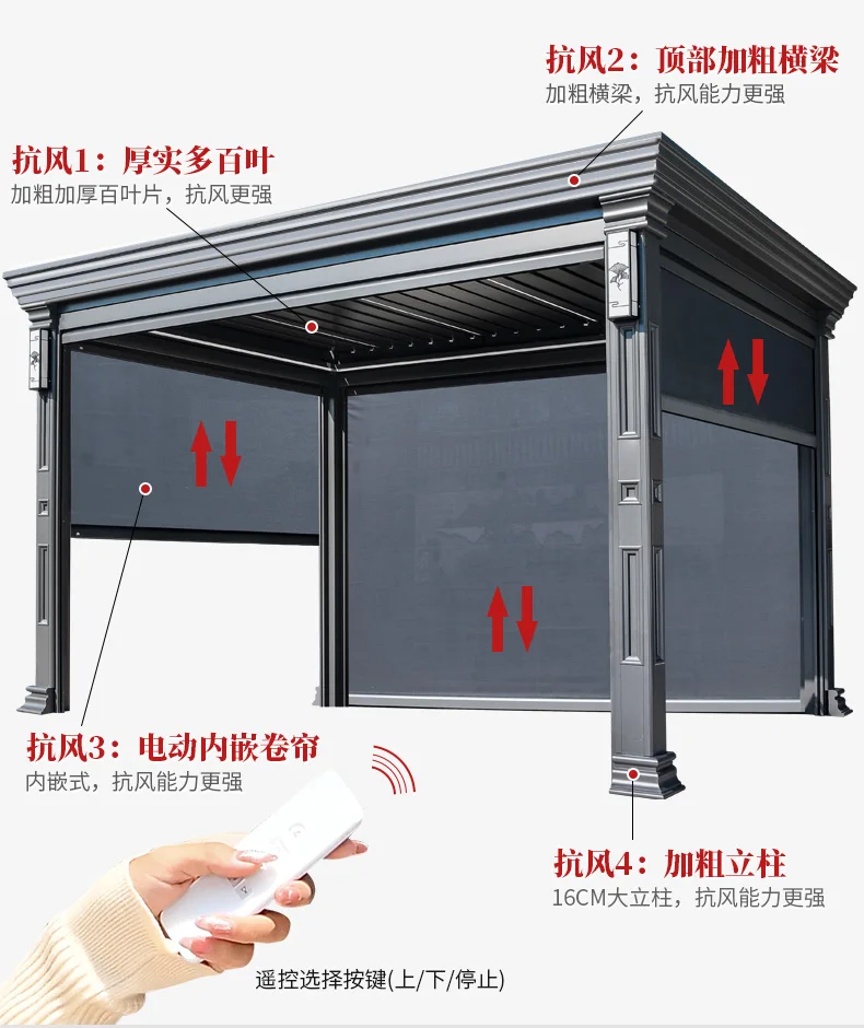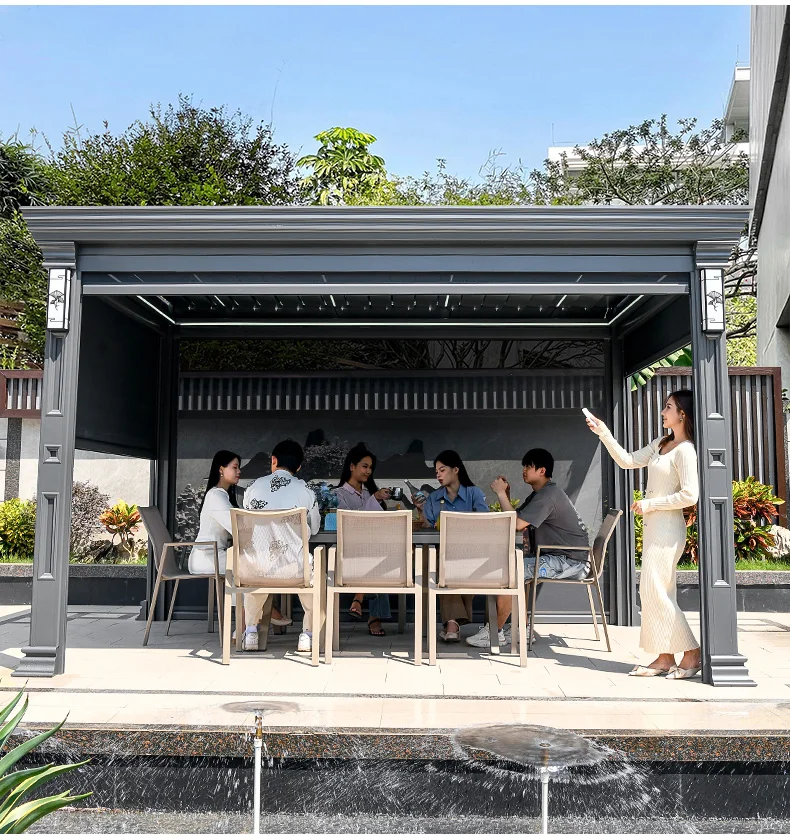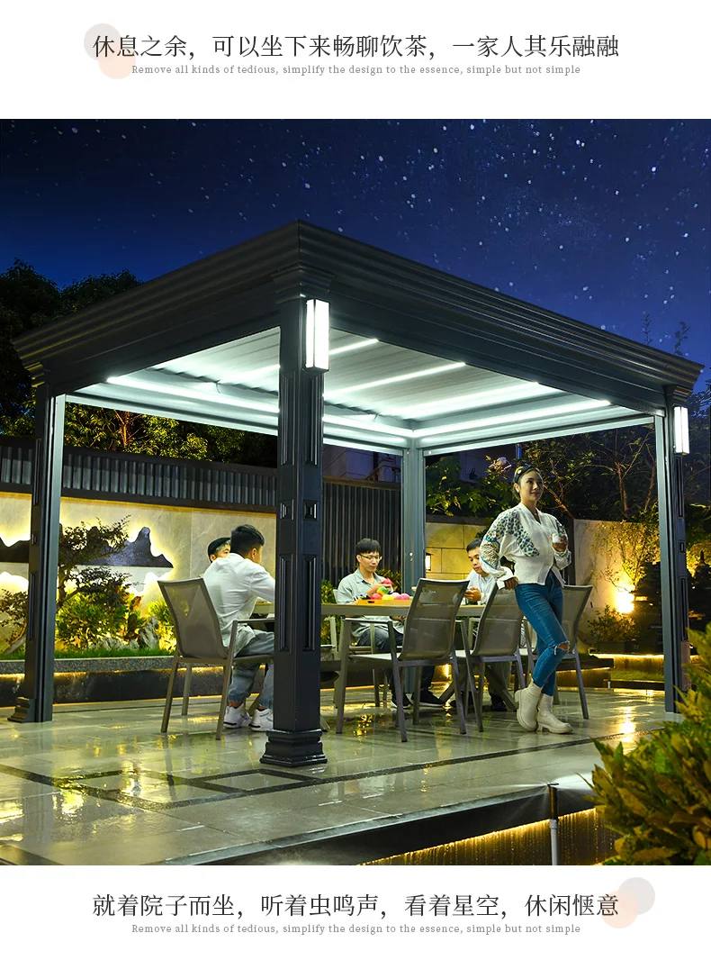 Outdoor pavilion electric telescopic Chinese style pavilion, sunshine room, aluminum alloy villa courtyard