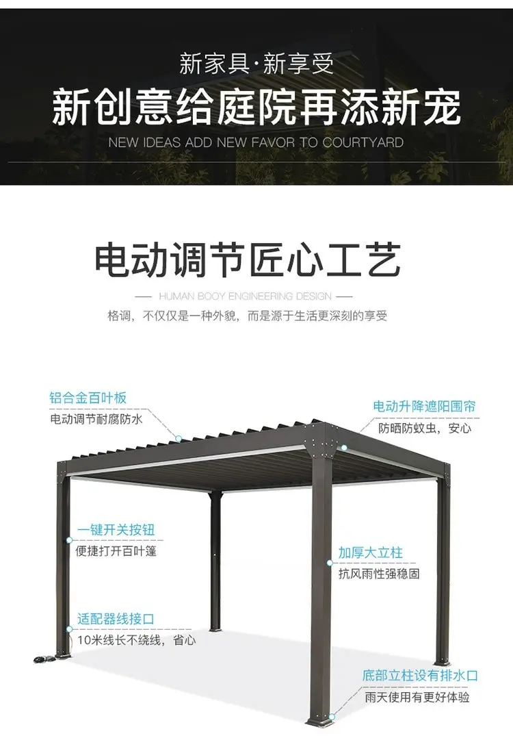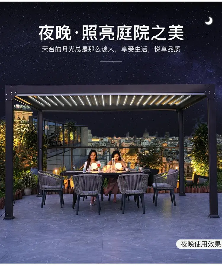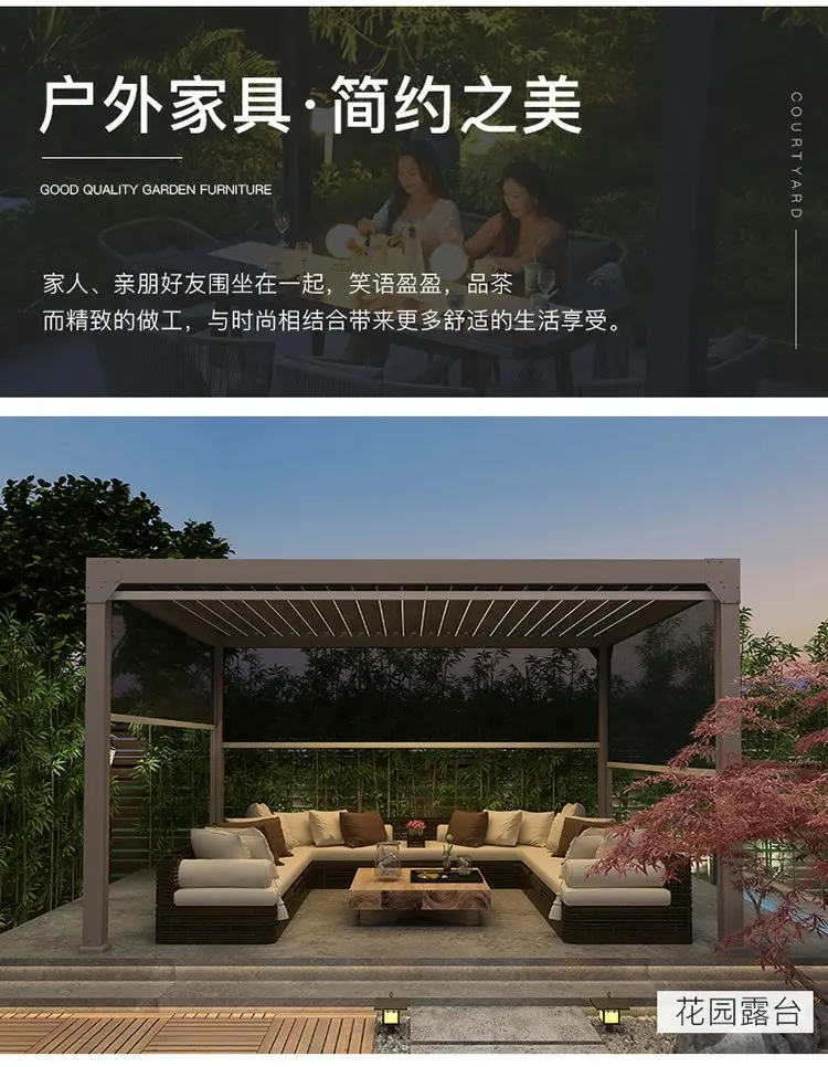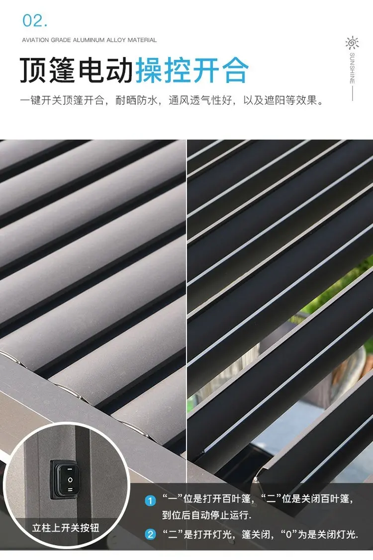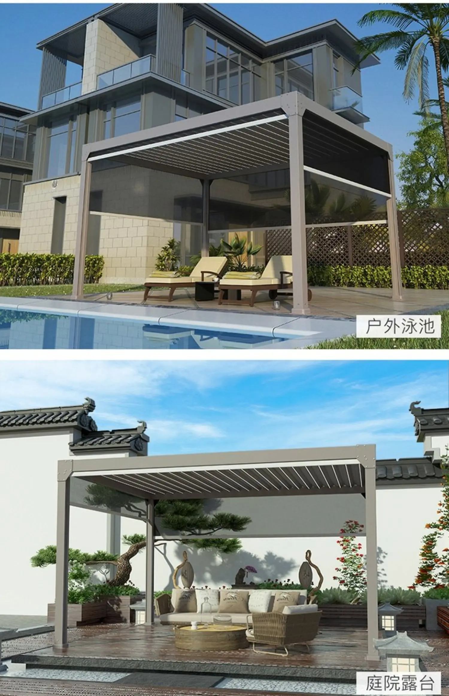 Outdoor pavilion, garden, villa, sunshine room, electric pavilion, automatic telescopic louver, aluminum alloy terrace, sunshade