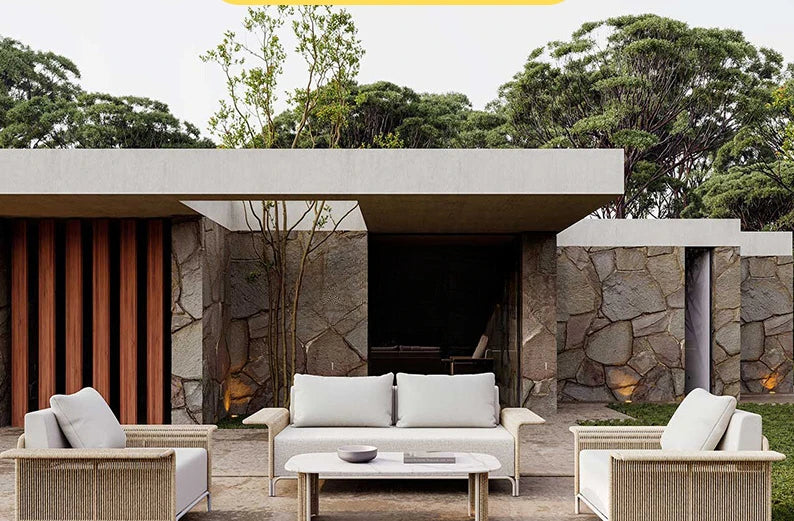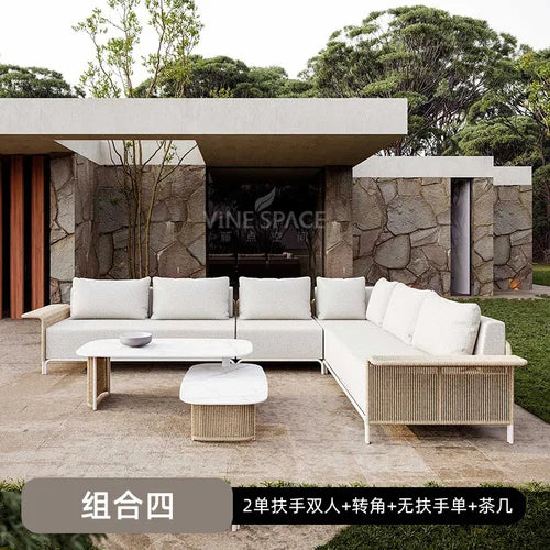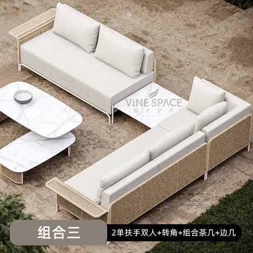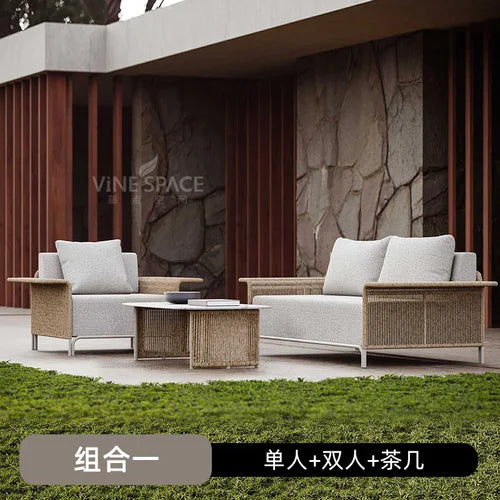 Outdoor sofa, courtyard, rope weaving, rattan chair, gold waterproof, sun proof terrace, Nordic corner furniture