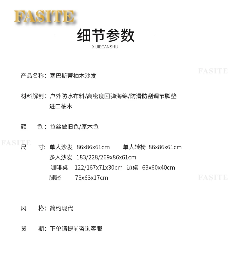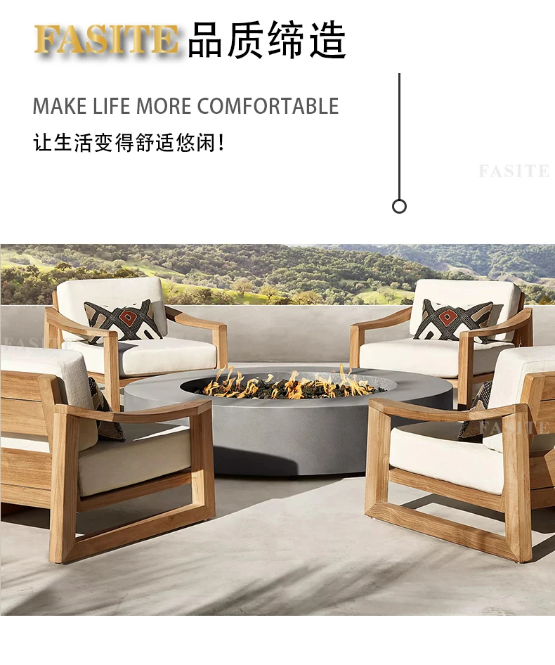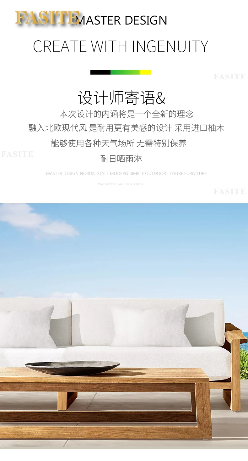 Outdoor Teak Sofa Courtyard Villa Garden Balcony Outdoor Simple Leisure Solid Wood Furniture