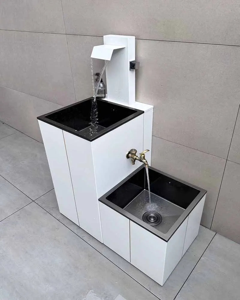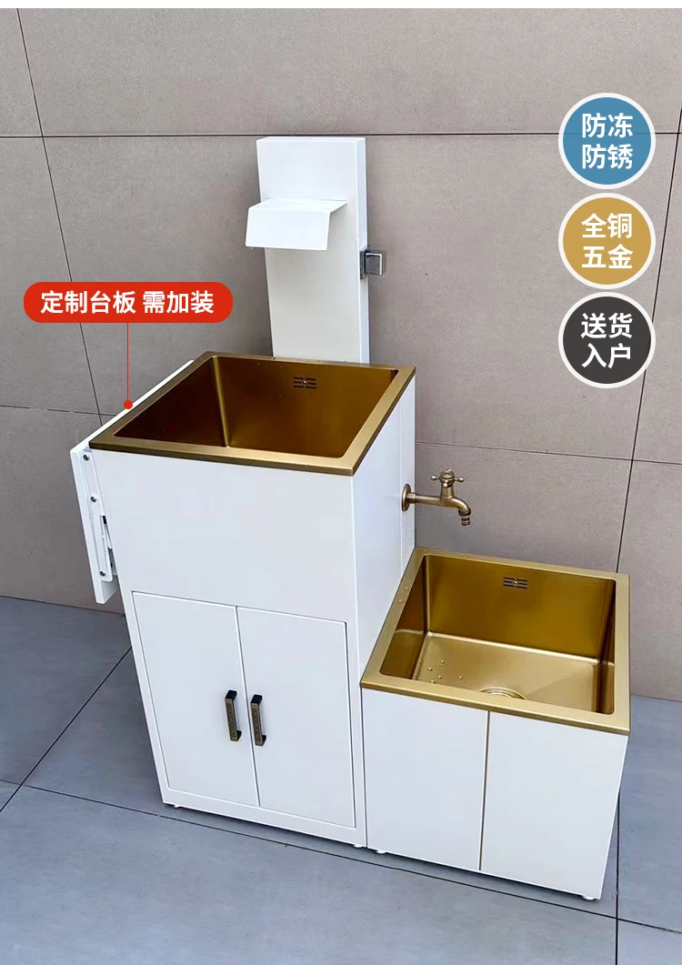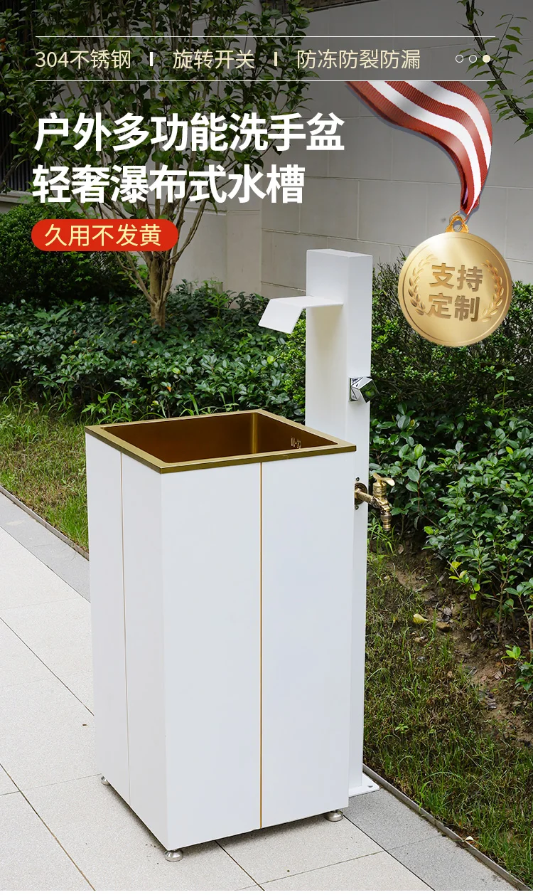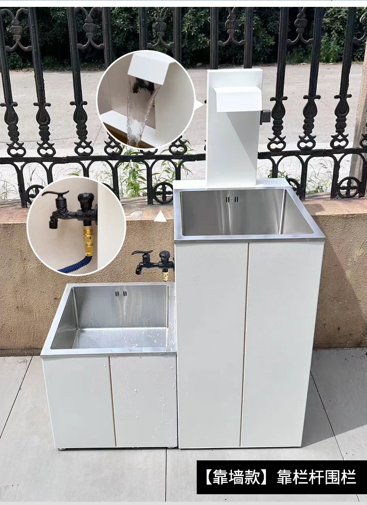 Outdoor white washbasin, outdoor villa basin, balcony column basin, stainless steel antifreeze and sun protection room column ba