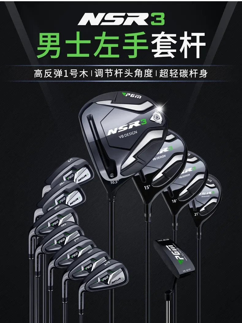 Pgm Nsr3 Men Left Hand 12pcs Golf Club Set with Standard Stretched Bag S/r Carbon Adjustable Loft Angle Pole Replaceable Mtg033