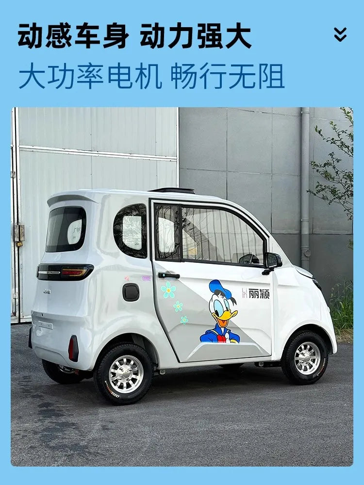 Picking up and dropping off children in enclosed luxury electric vehicles, cars, and new energy electric four-wheel scooters for