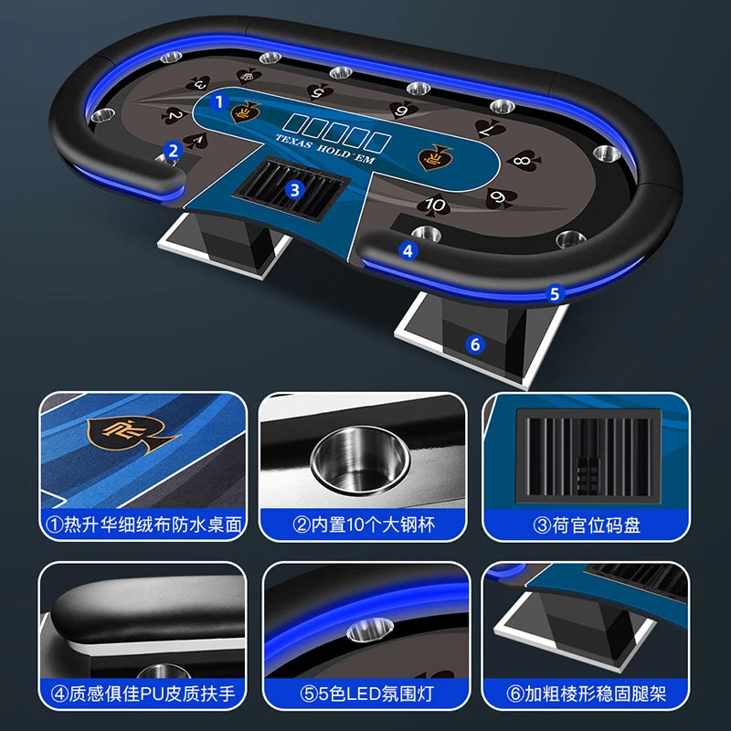 Poker Table with Remote Control LED Light Desktop Cloth Cushion Color Size Can Be Customized