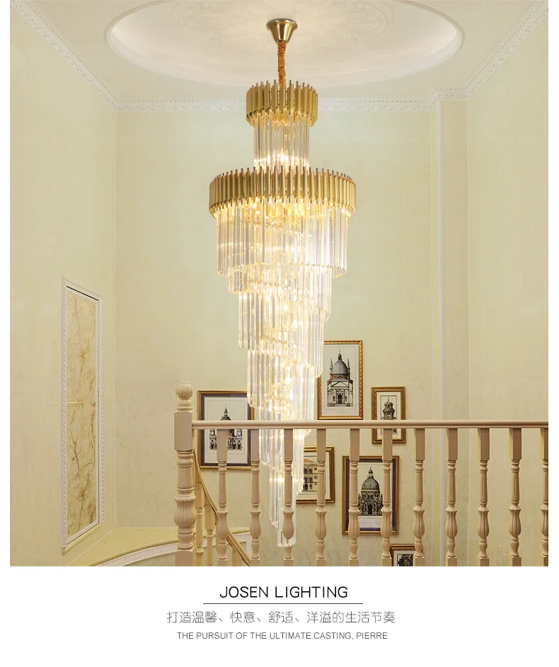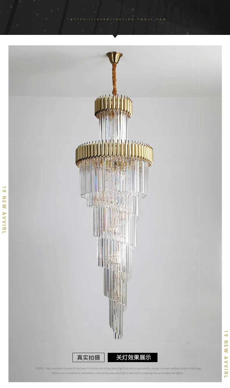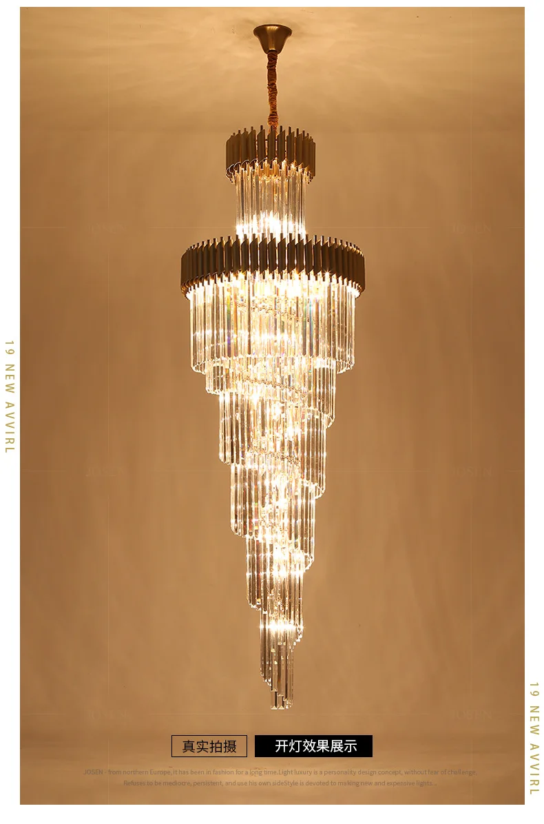 Post-modern luxury K9 crystal 12W LED three-color villa hotel lamp pool staircase crystal chandelier duplex building hall villa