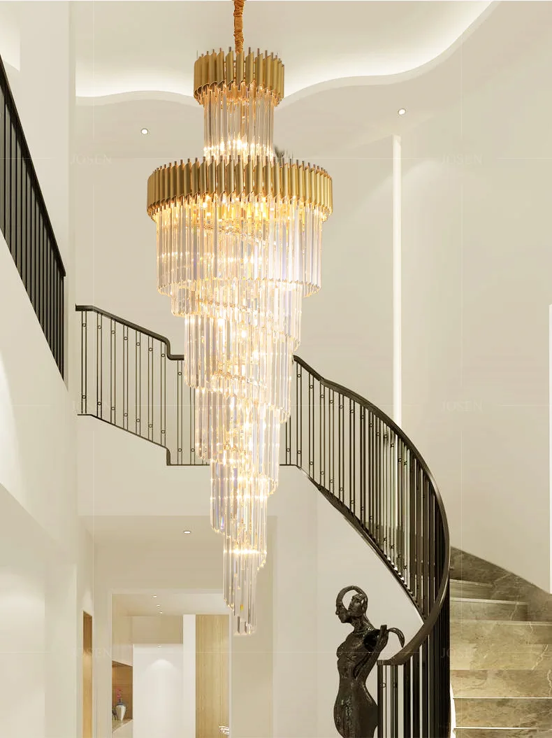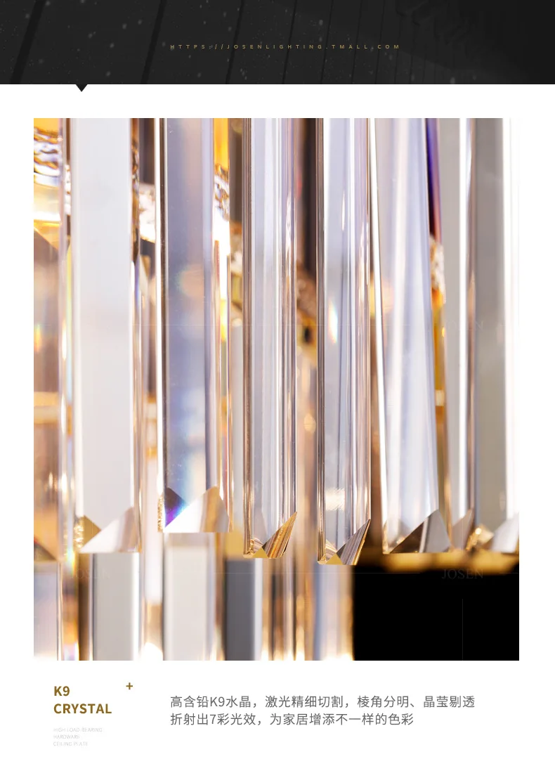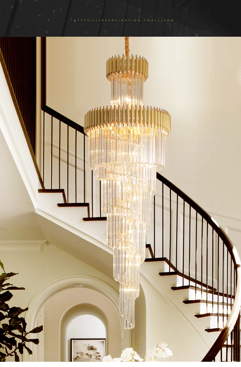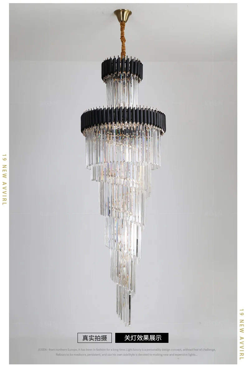 Post-modern luxury K9 crystal 12W LED three-color villa hotel lamp pool staircase crystal chandelier duplex building hall villa