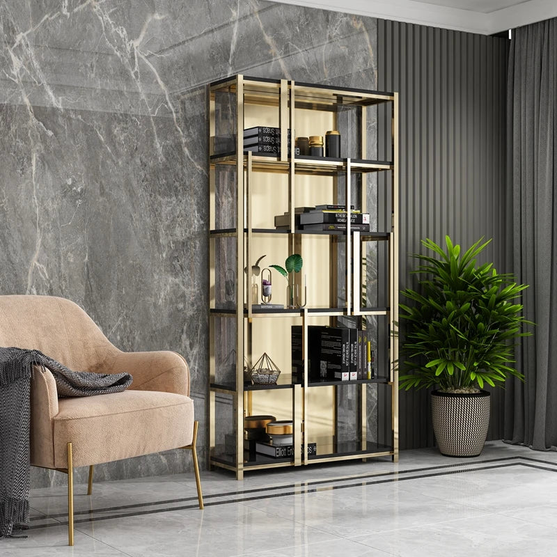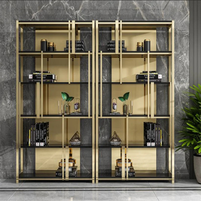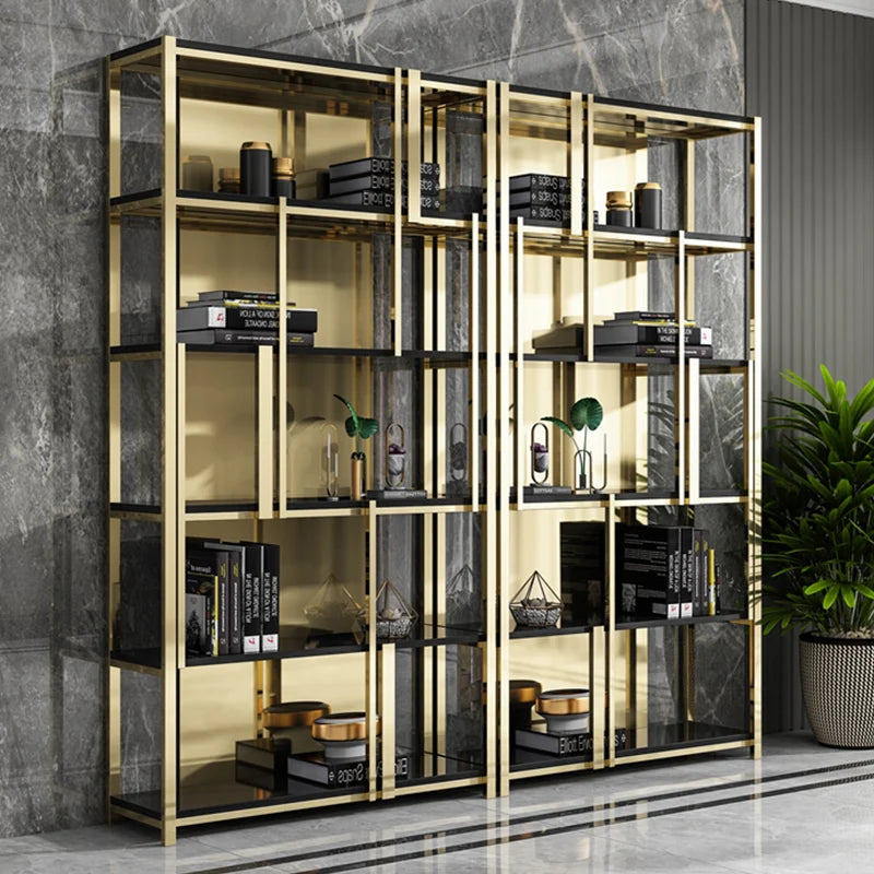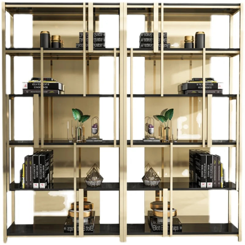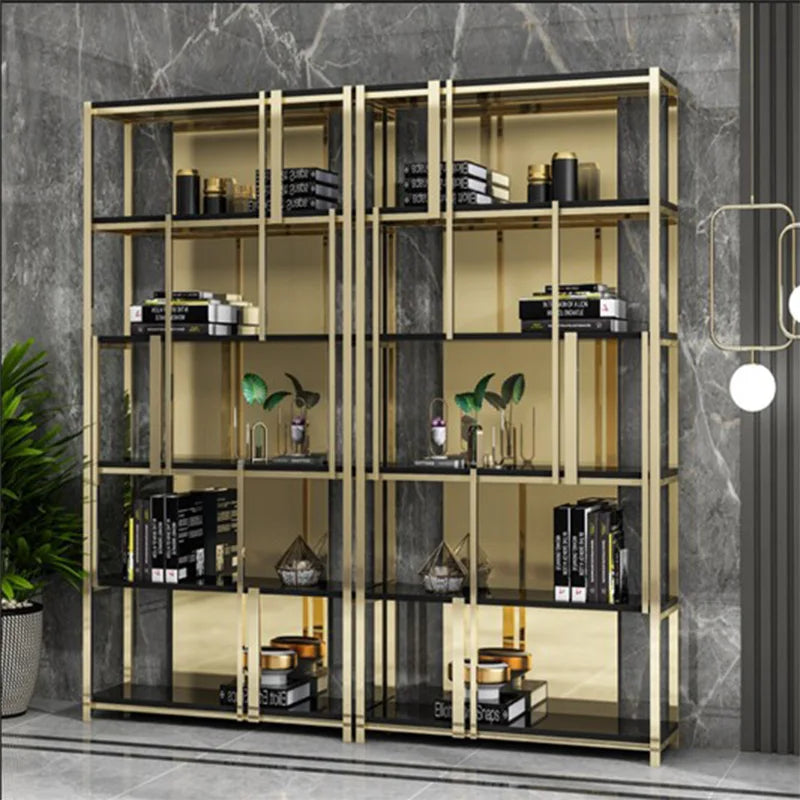 Post-Modern Stainless Steel Bookshelf Floor Office Storage Rack Model Room Shelf Light Luxury High-End Metal Display Stand