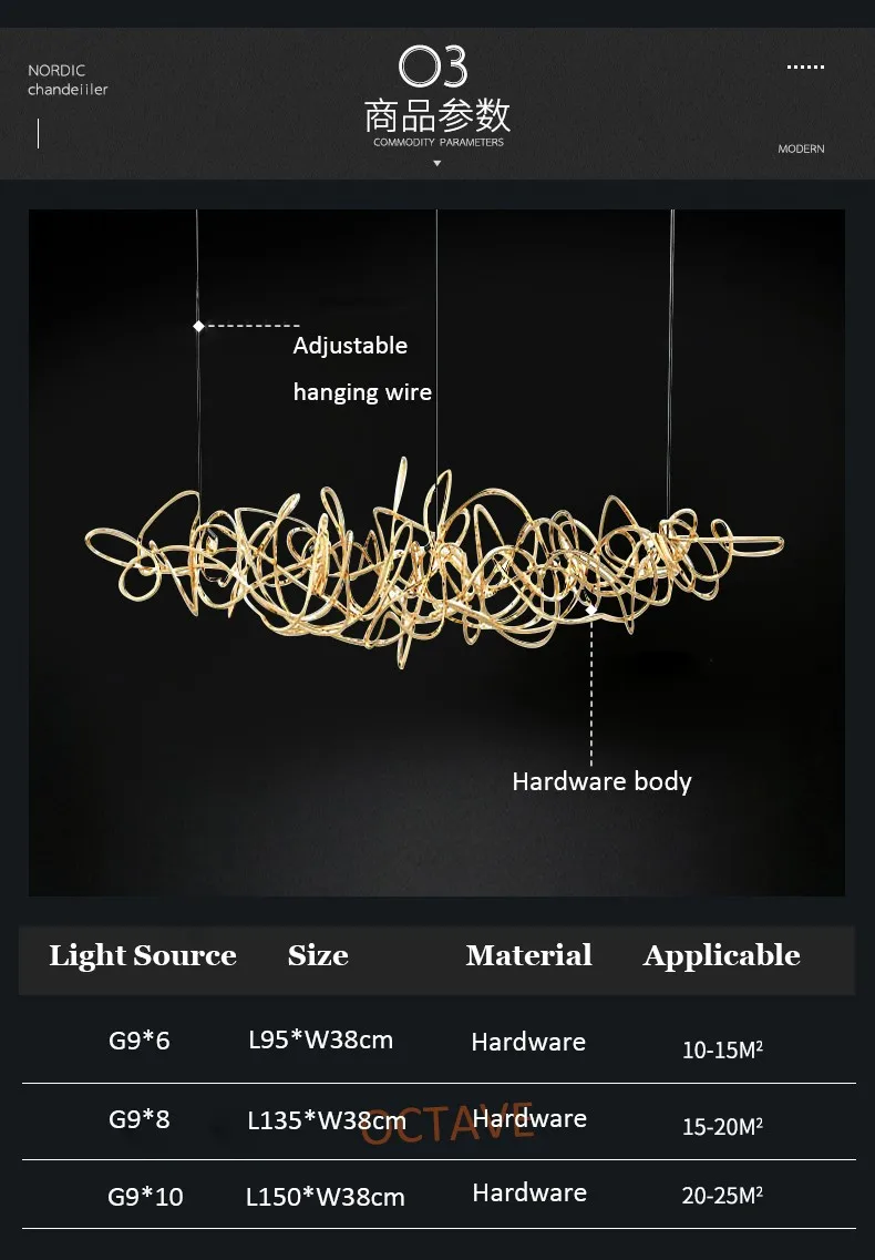 Postmodern Chandelier Living Room Creative Personality Villa Restaurant Lamp Nordic Conference Room Gold Chrome G9 Hanging Lamp