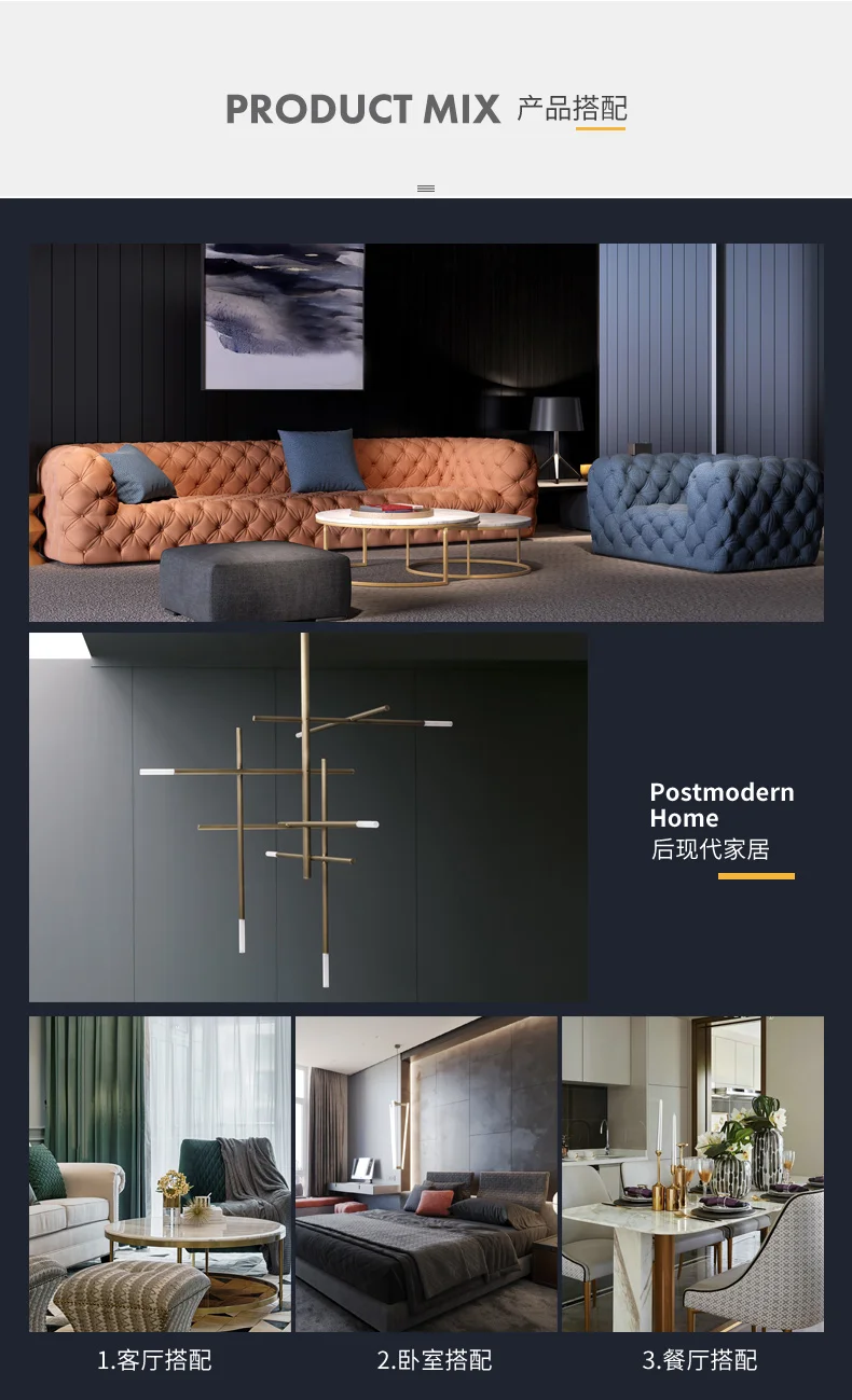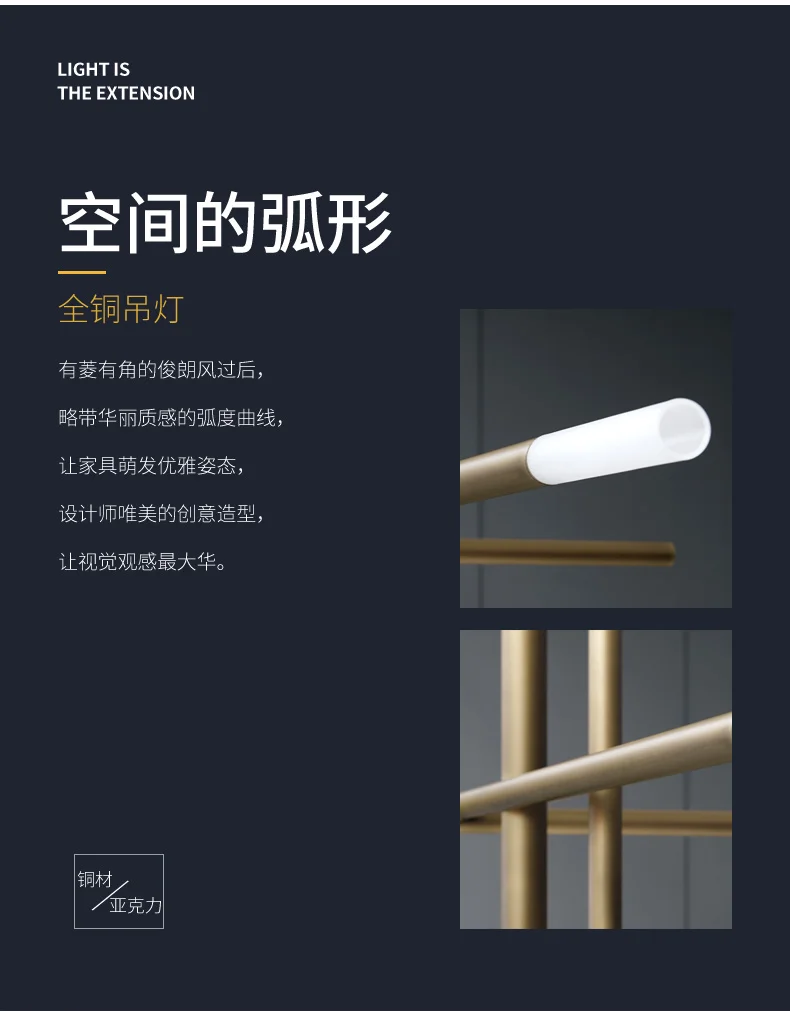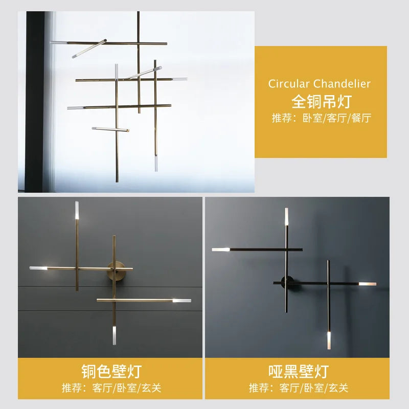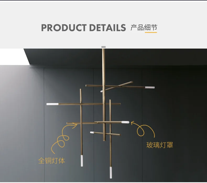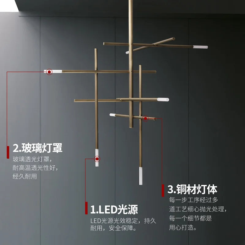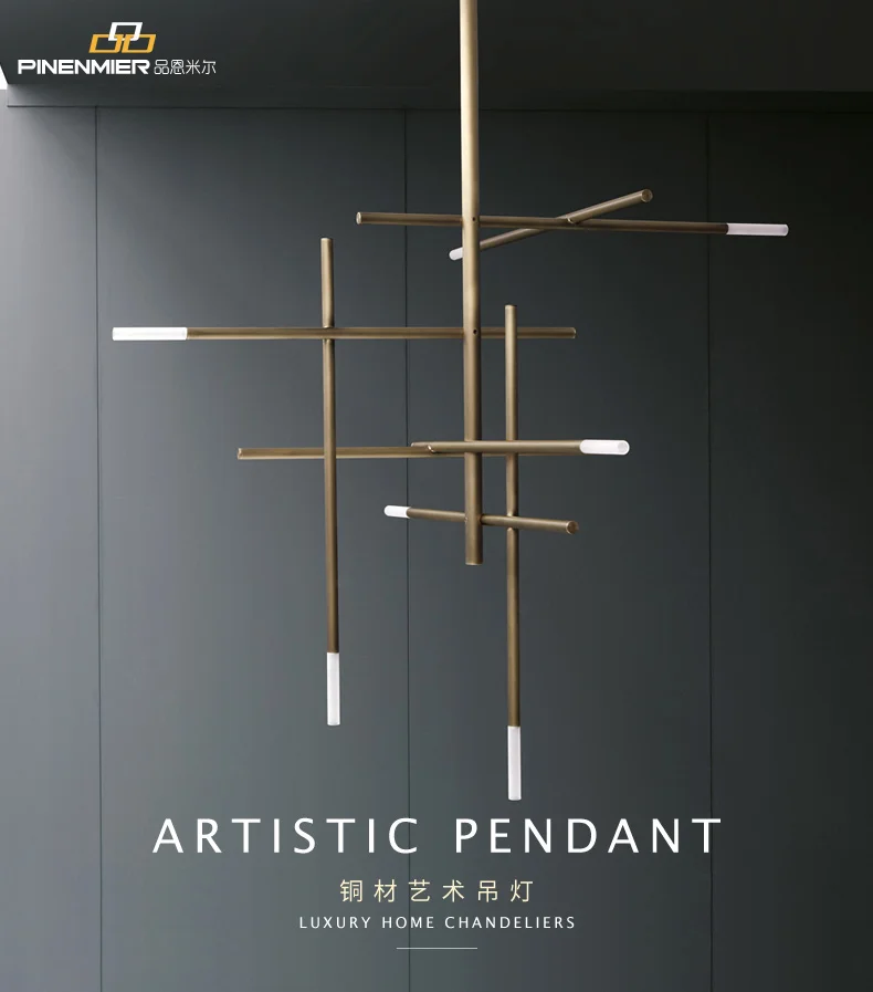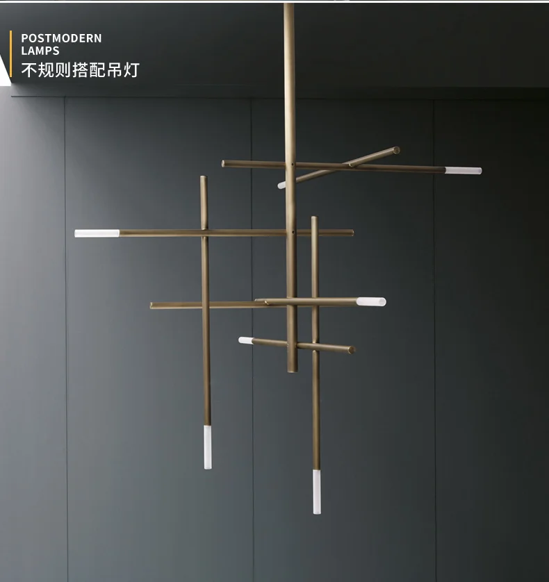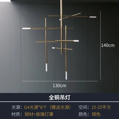 Postmodern creative chandelier villa living room bedroom Nordic personality simple light luxury all copper lighting